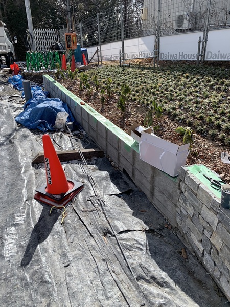 DHS様邸、RYO、石張り、笠布設、目地、西側置き換え工
