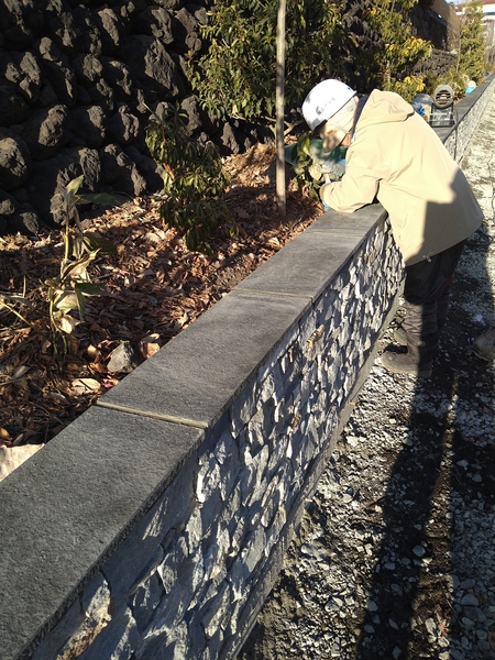 DHS様邸、RYO、石張り、笠布設、目地作業