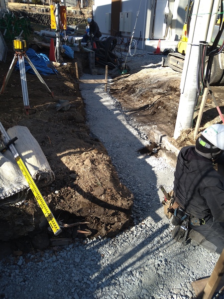 DHS様邸、RYO、石張り、掘削、砕石入れ、型枠組み立て作業