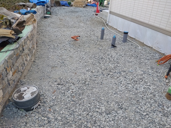 DHS様邸 yas ブロック天端工 西側掘削、砕石入れ