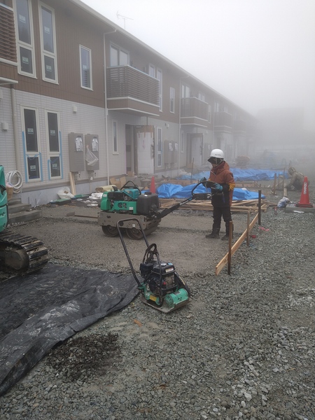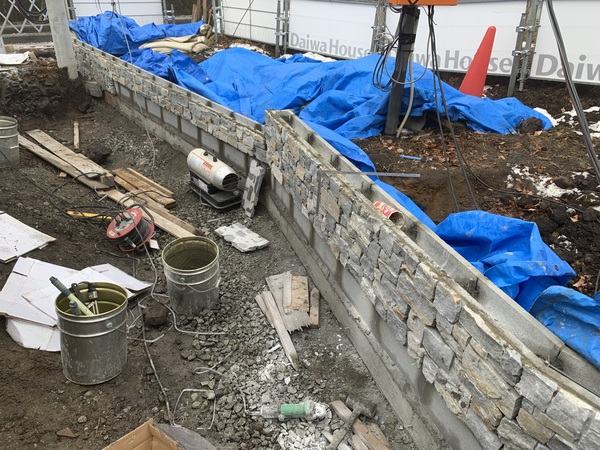 DHS様邸、RYO、石張り、アプローチ掘削、型枠組み立て作業