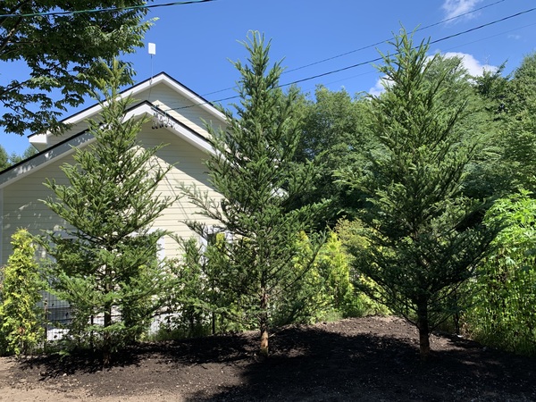 植栽(ヨーロッパゴールド14本、モミ3本)、芝配り替え(7枚)、水やり