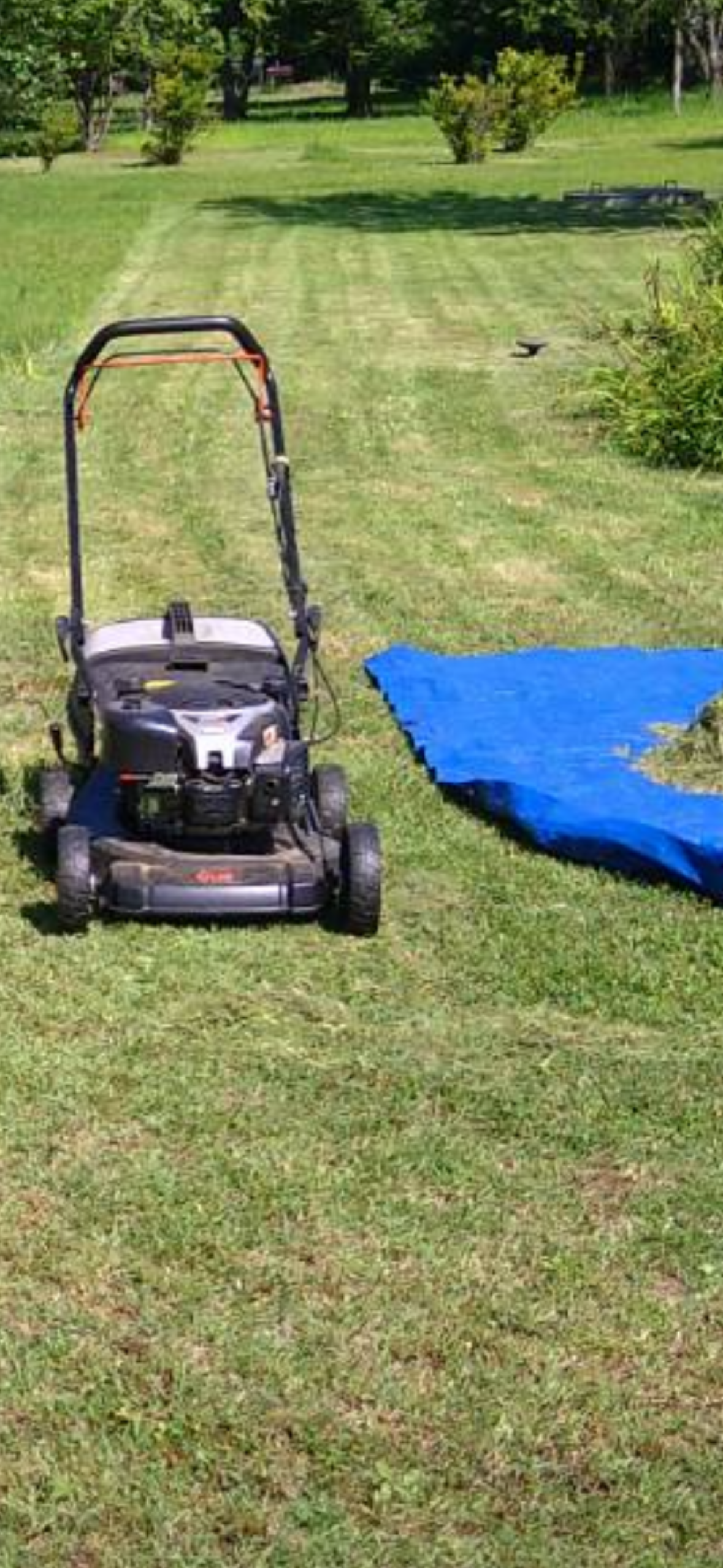 草 枝ゴミをダンプに積み込み やれるところまで 芝刈り機で芝刈り