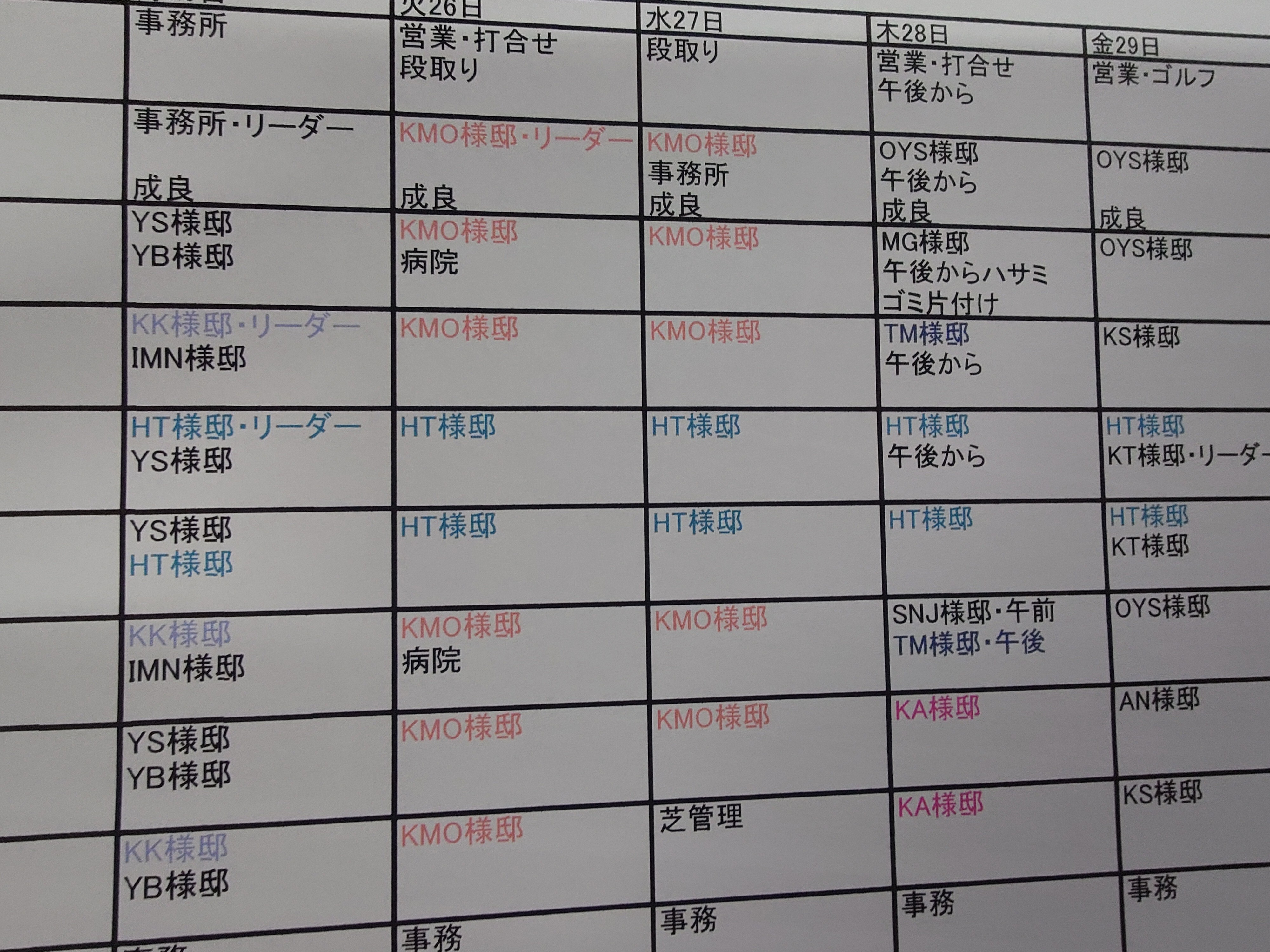 週間予定表作り、周知。コンビニ、コピー取り直し、
