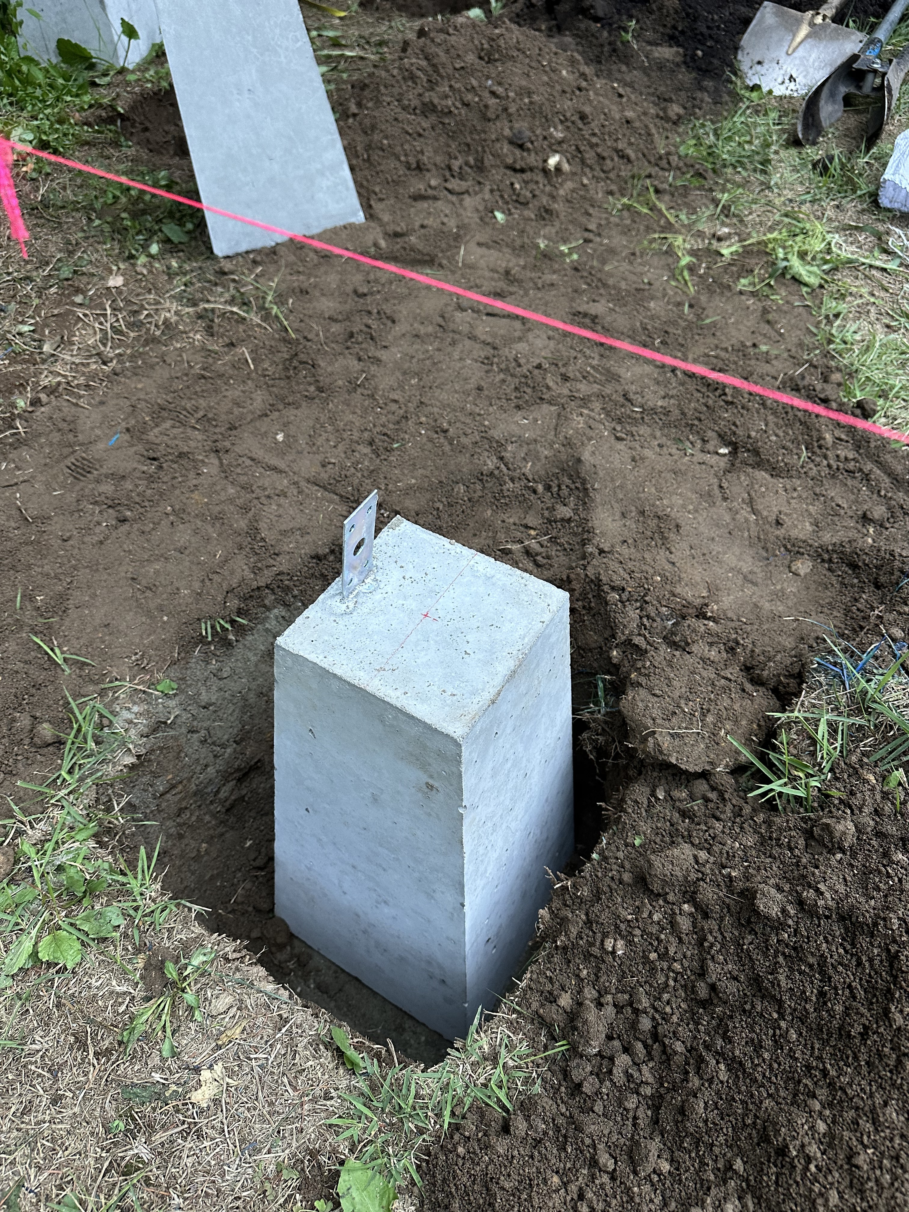 HT様邸で 柱ペンキ塗り 穴掘り 束設置 設置の途中で本日 作業終了です。 人員2名 17時00分終了。