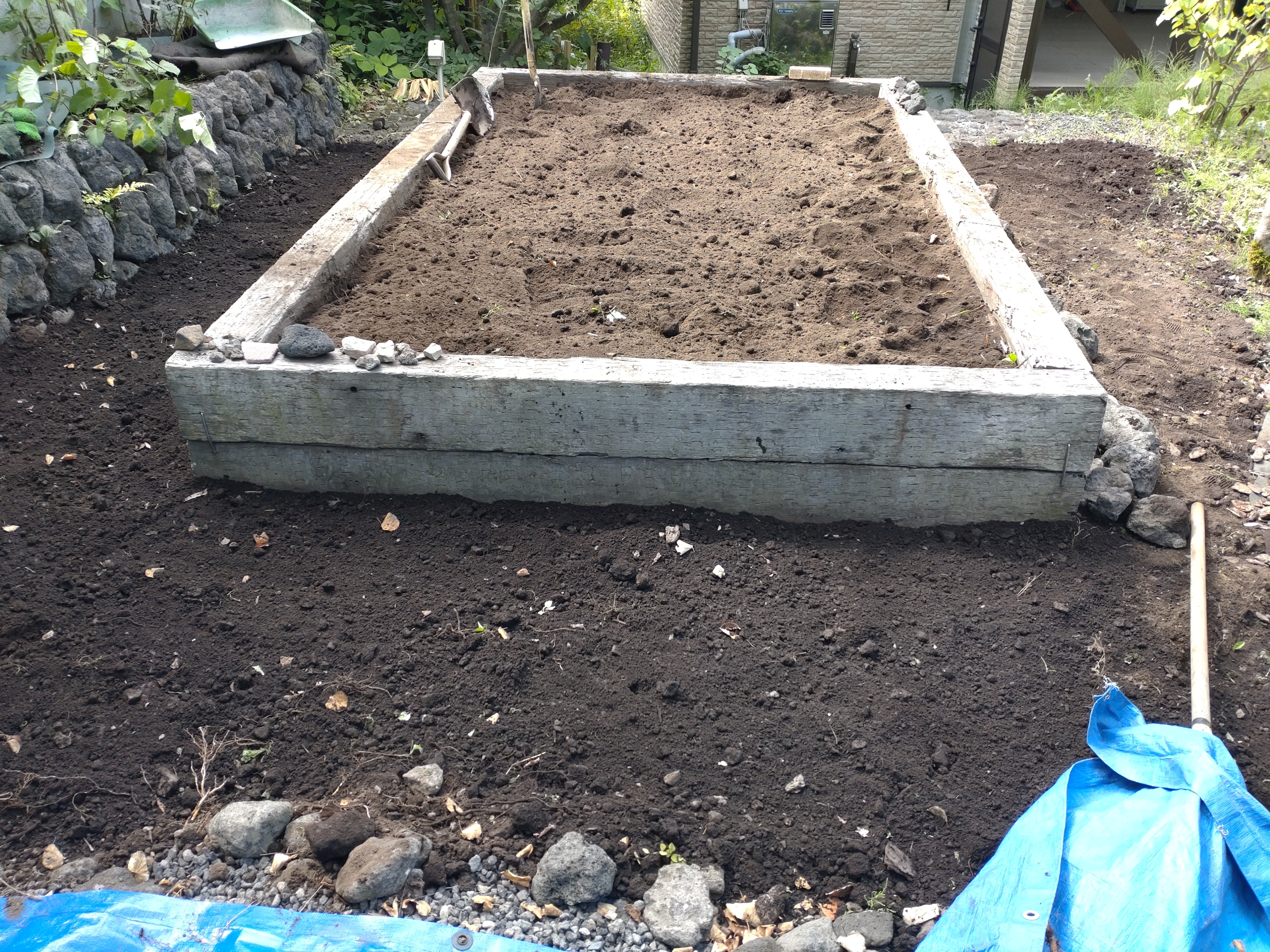 奥側の枕木畑の周り3方向(コの字)深さ30センチで掘り起こし
