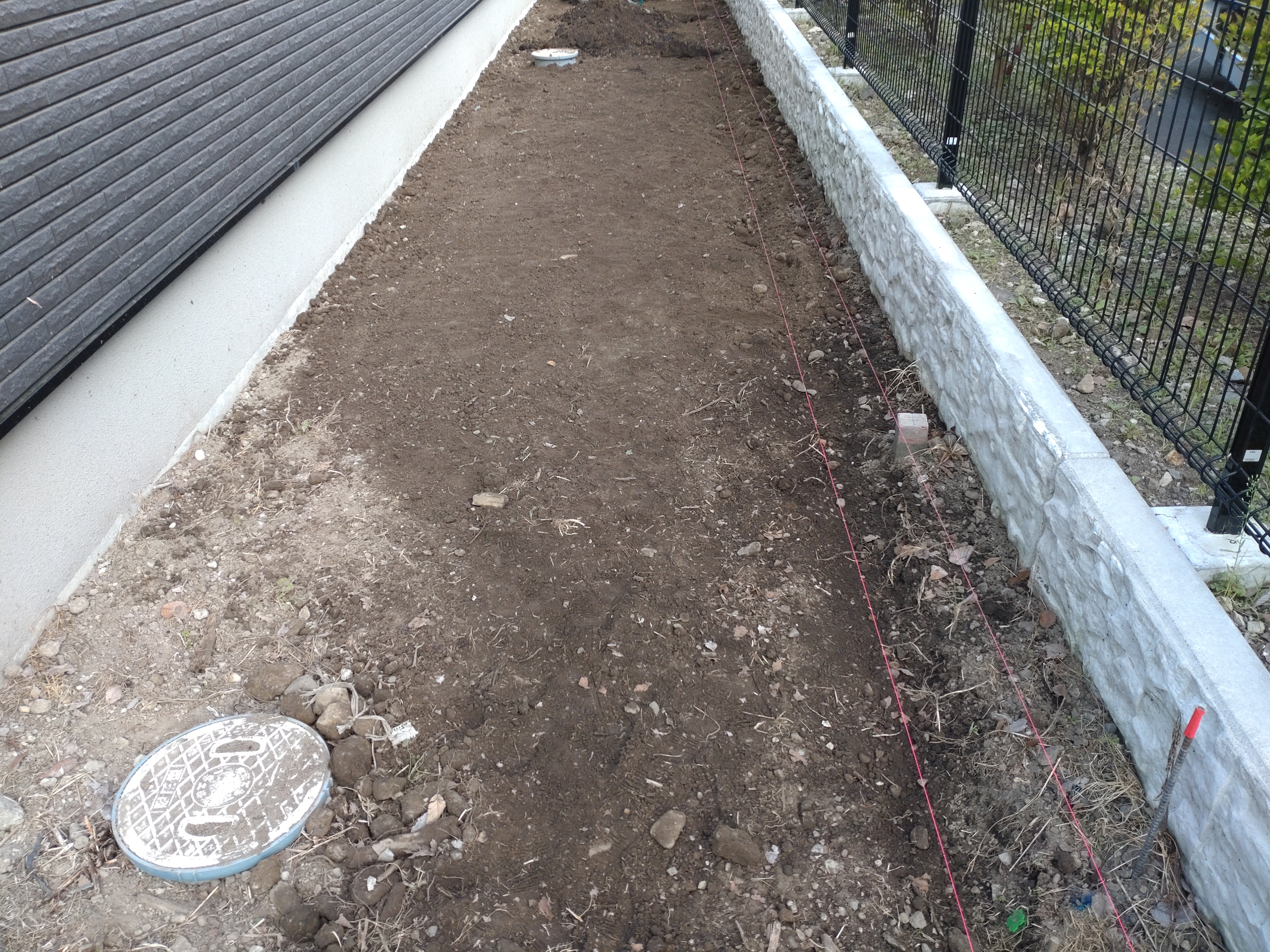 フェンス工事側の表土剥ぎ(幅1.9m✕長さ16m)場内残土から土入れ