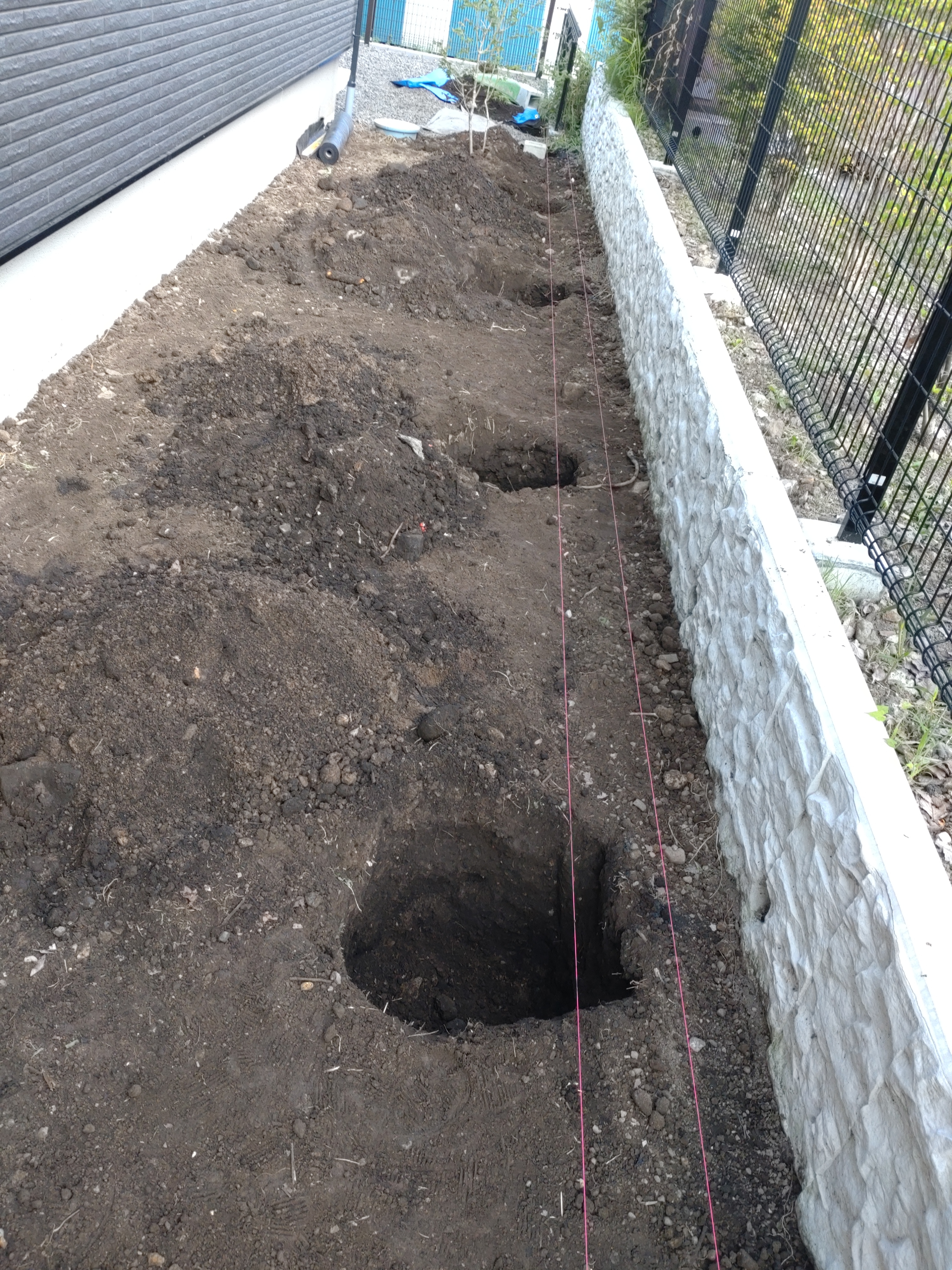 明日もKT様邸です午前中に残り4箇所穴掘りと束石10個布設予定です。