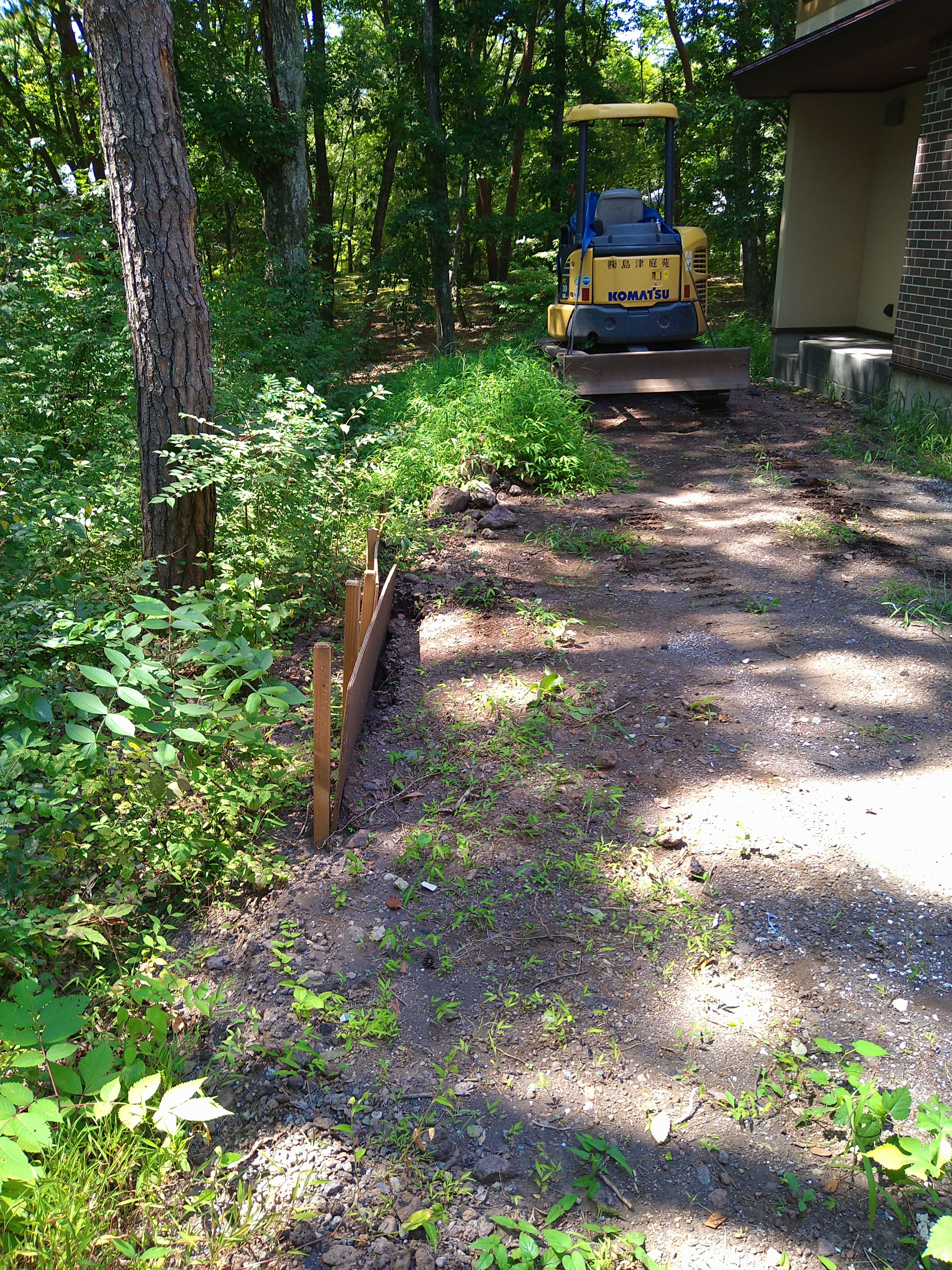 その後、ハサミをバケットに替えて、来週月曜日から始まるNTD様邸を運搬して12時15分に終了しました!人員1名、枝ゴミ、根っこ各1台ずつ産廃屋に搬出しました!