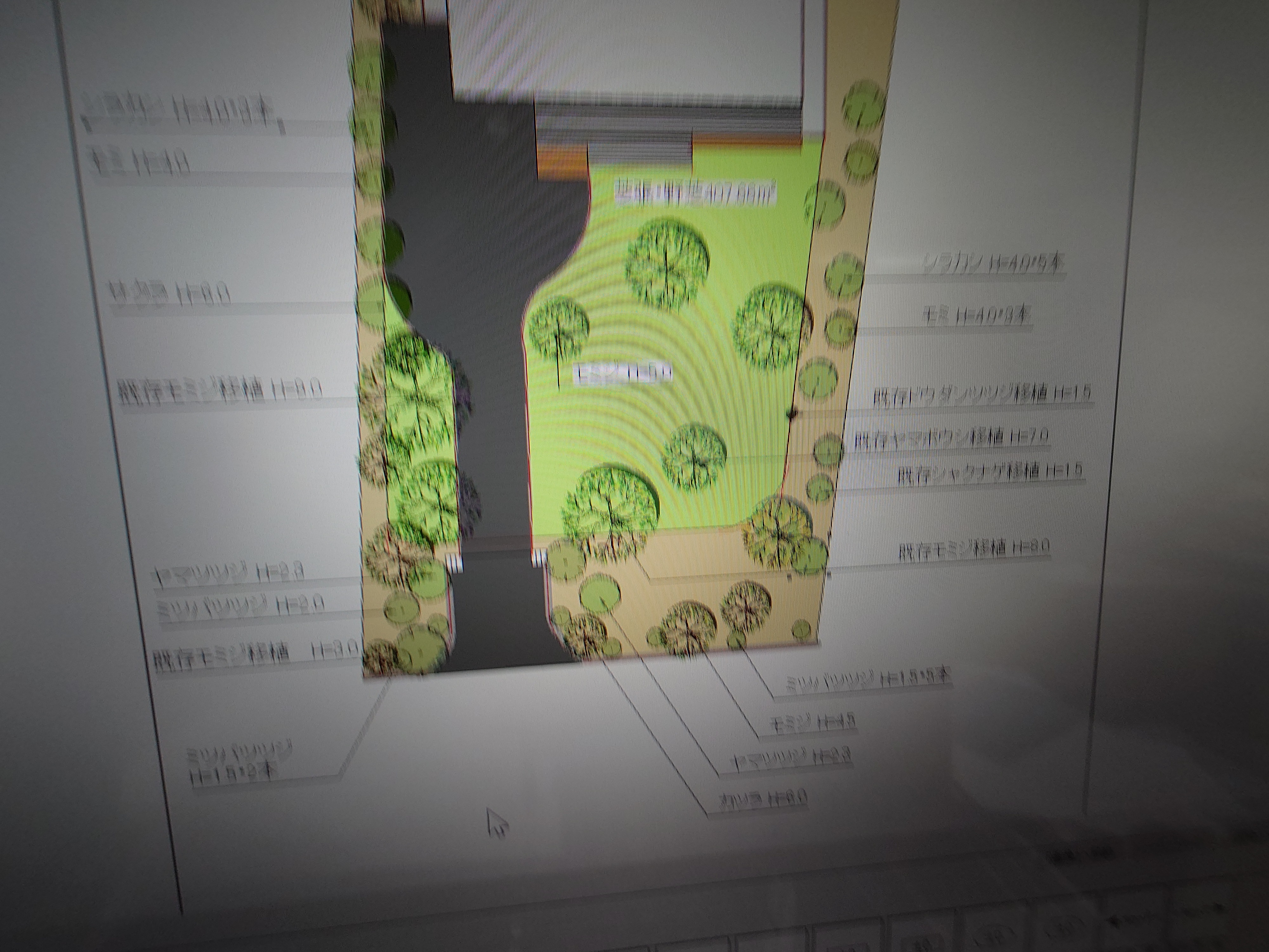 14時30分から事務所。CKN様邸、植栽配置図、イメージ図、見積書作成、メール送信、19時まで。