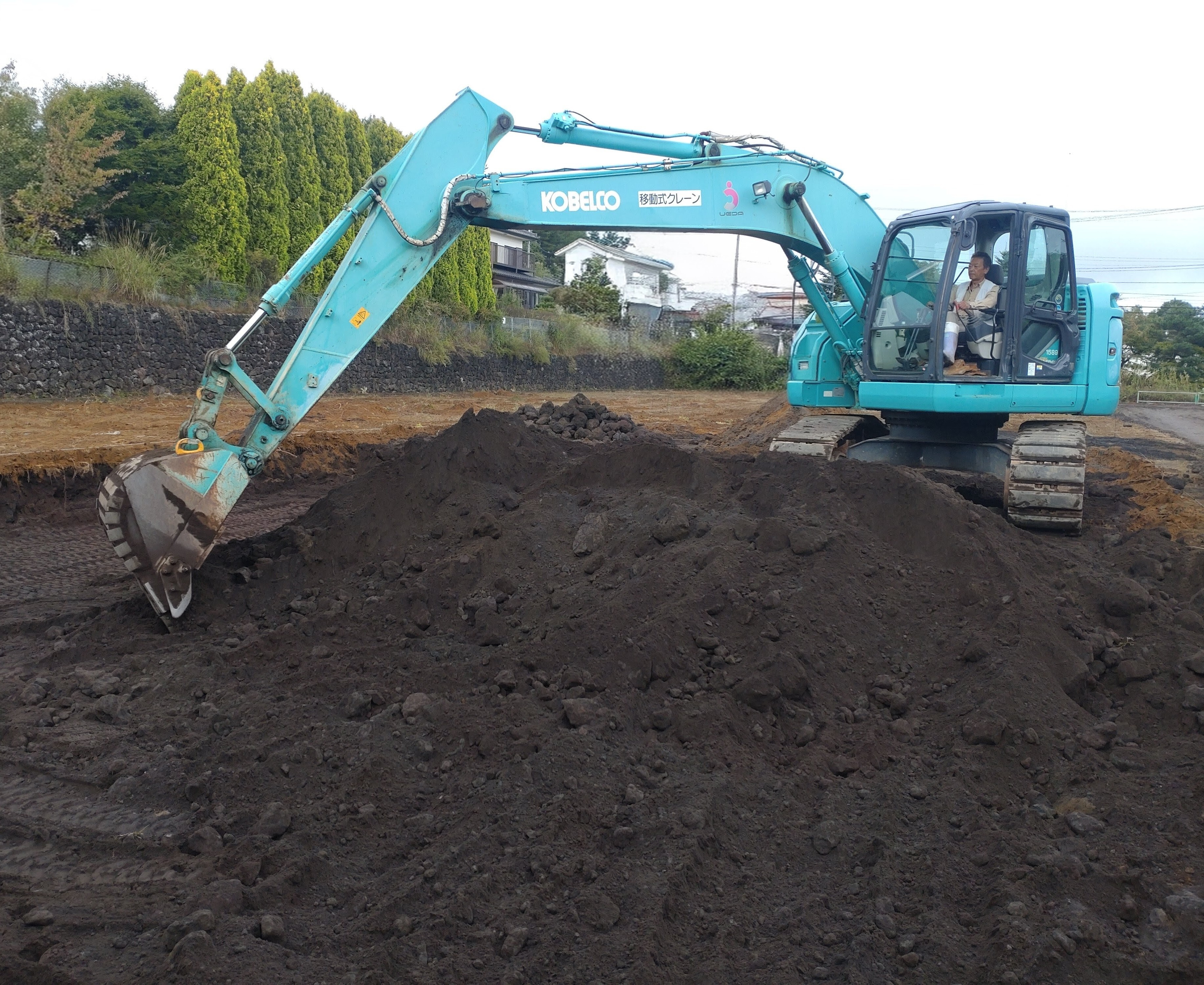 使用機材 大型バックホー、バックホー、大型ダンプ3台、オートレベル