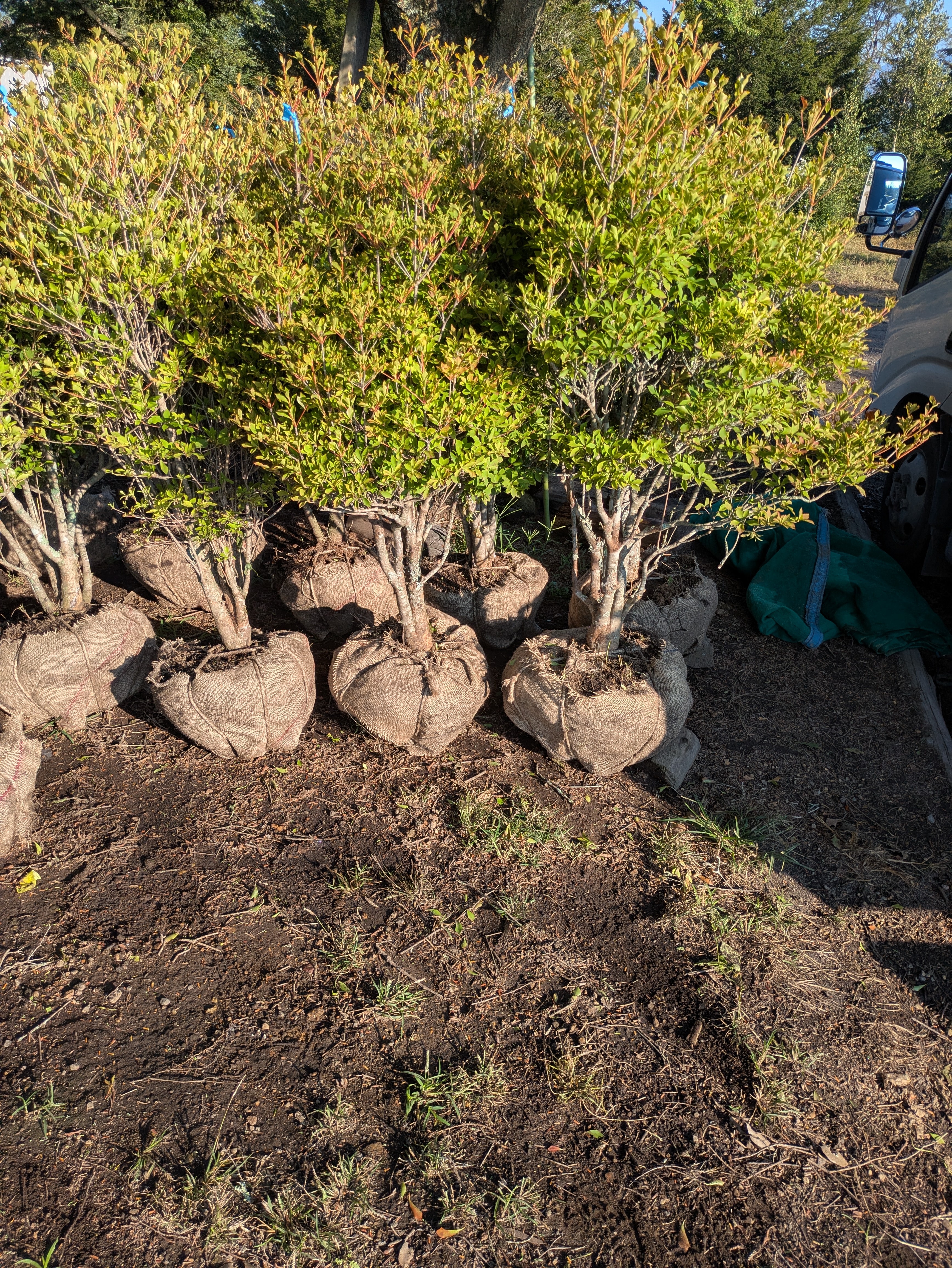 川口の植木屋で、アオキの積み込み