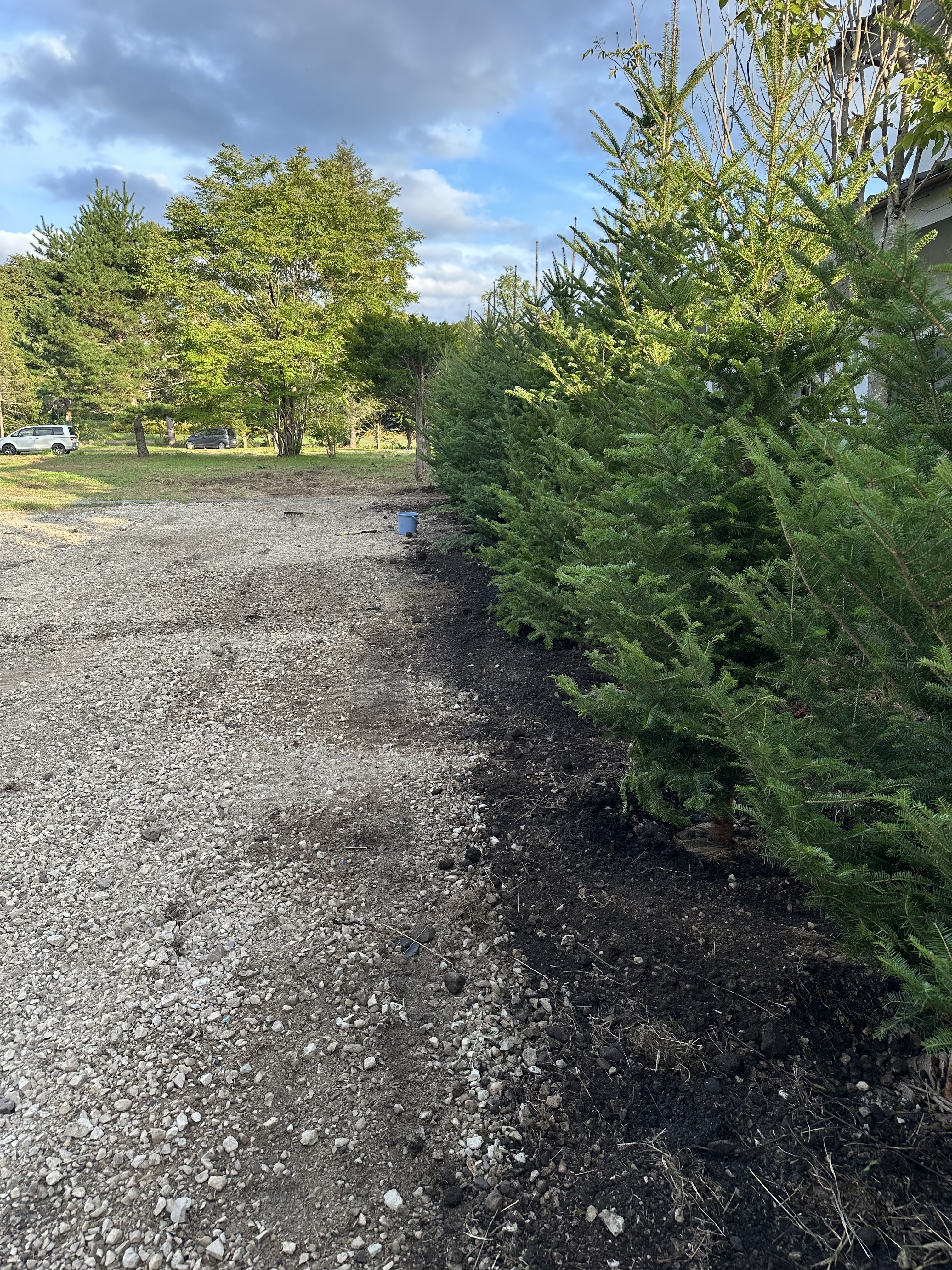 お疲れ様です。 本日の作業 7時30分 SKY様邸 人員2名途中から3名 昨日の続きで 社長がユンボでモミを植栽整地 自分はユニックで構内モミを配りました。