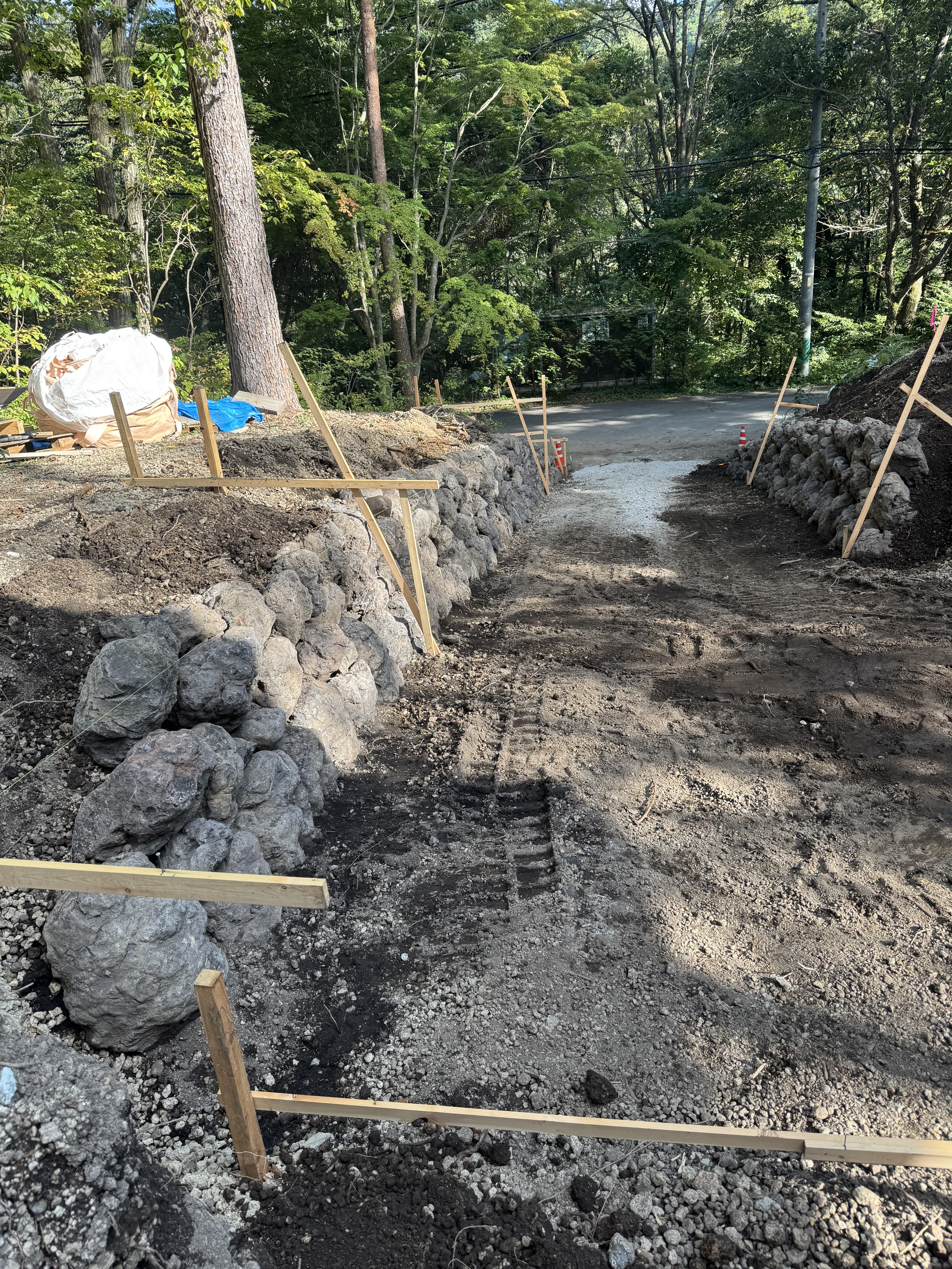 一昨日からトータル35m2積みました。石積みがあと2日位かかりそうです。