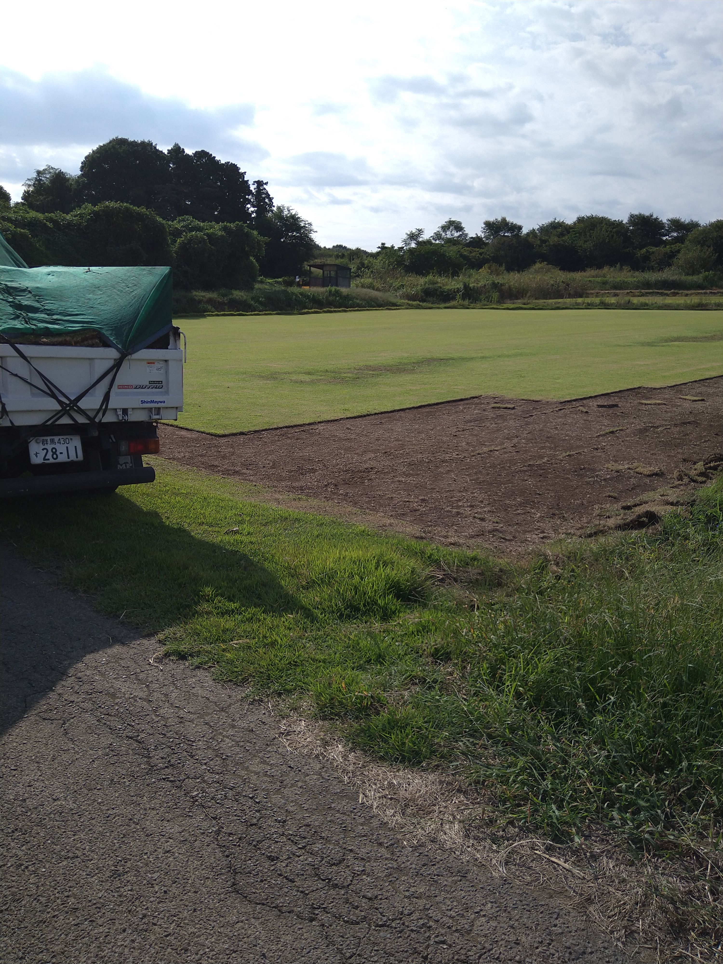 8時につくば市の芝屋さんに行き、畑に連れてってもらって芝の積み込み150束をしました!9時過ぎに出発し、1時過ぎにIOT様邸に到着し、芝を100束下ろして、芝張りをしました!