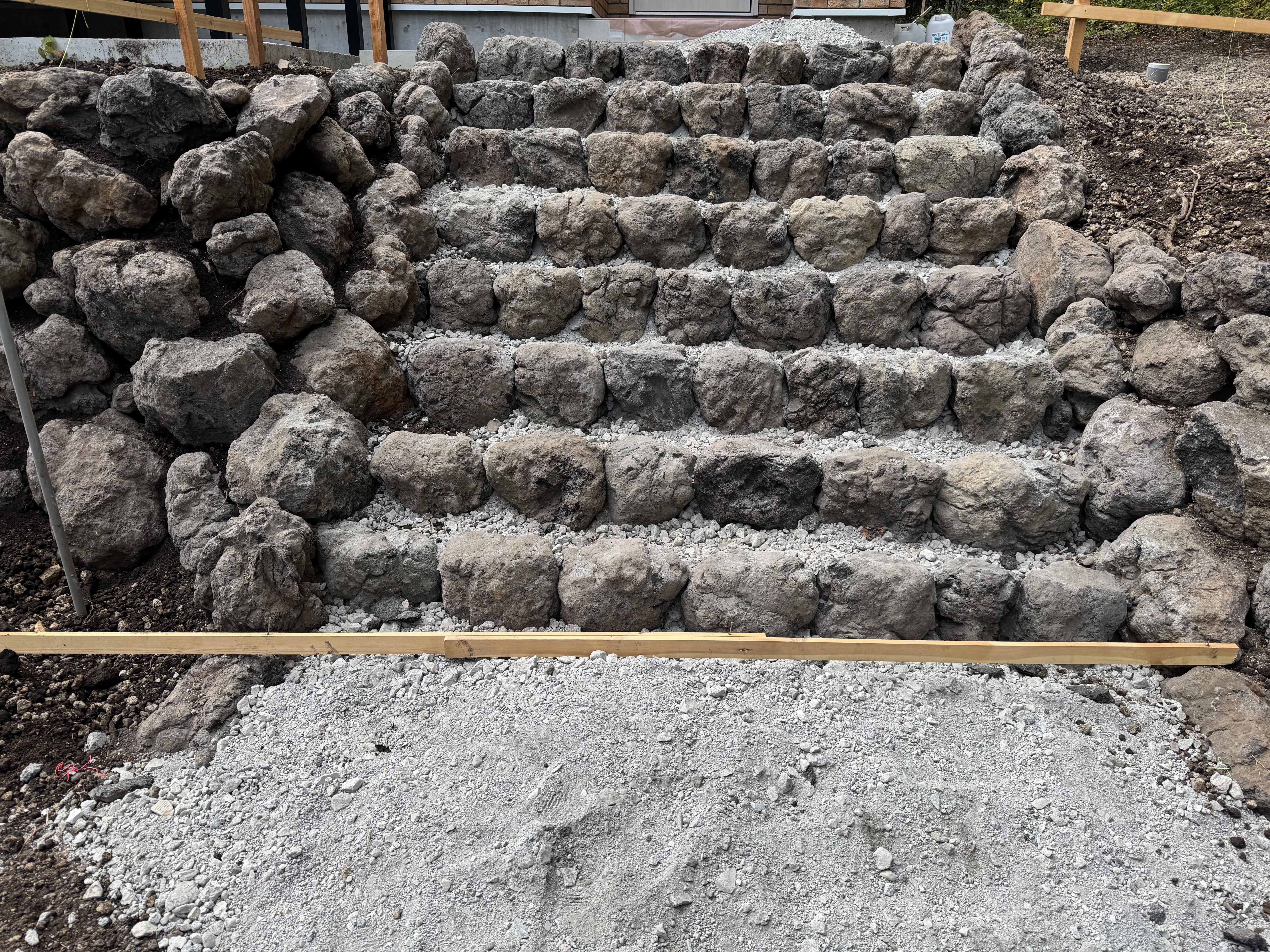 8時から16時、SYU工業様現場で階段作りと階段の両脇の石積み