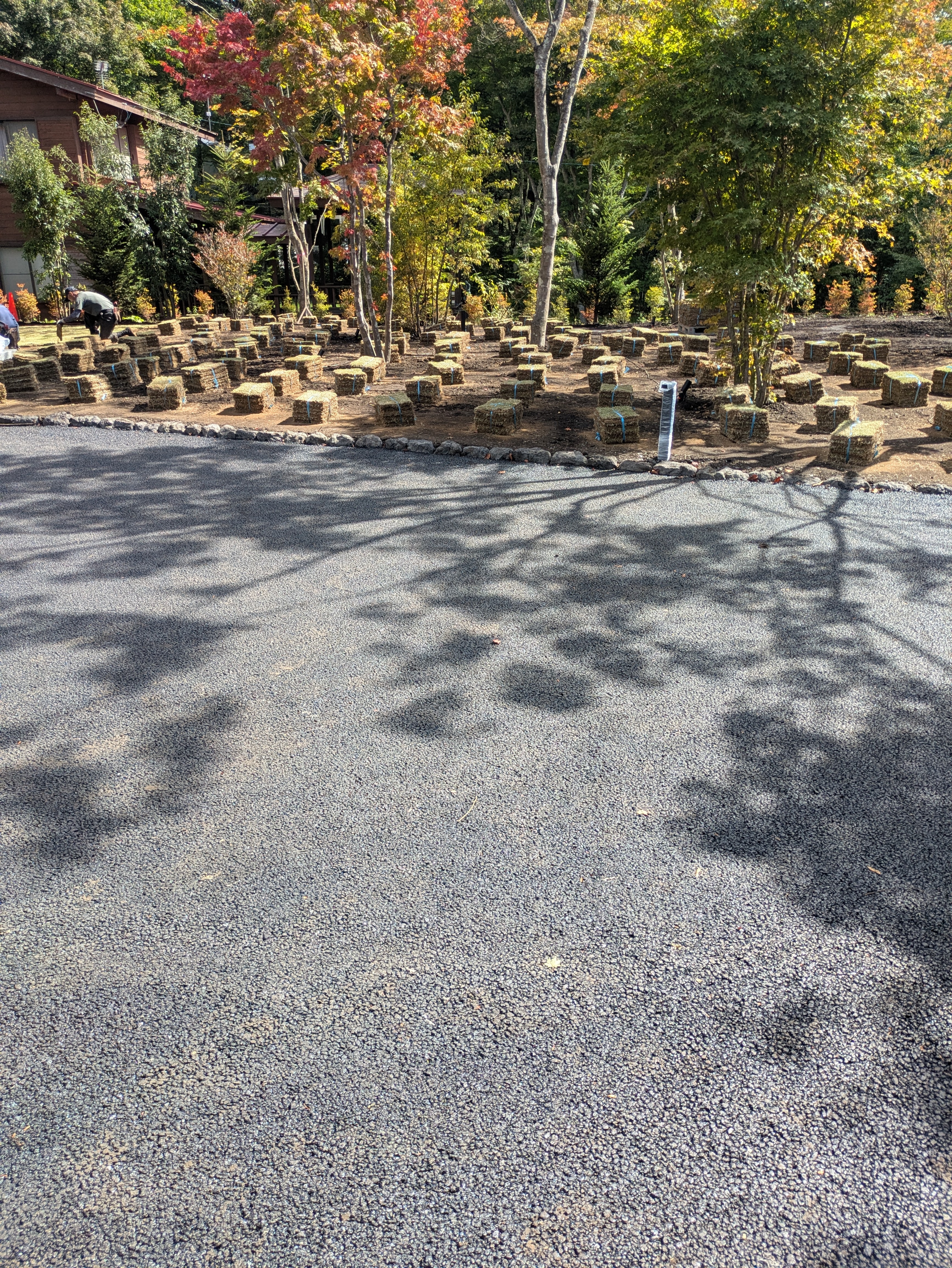 芝の下地整地、オートレベル高さ確認 ローラー掛け
