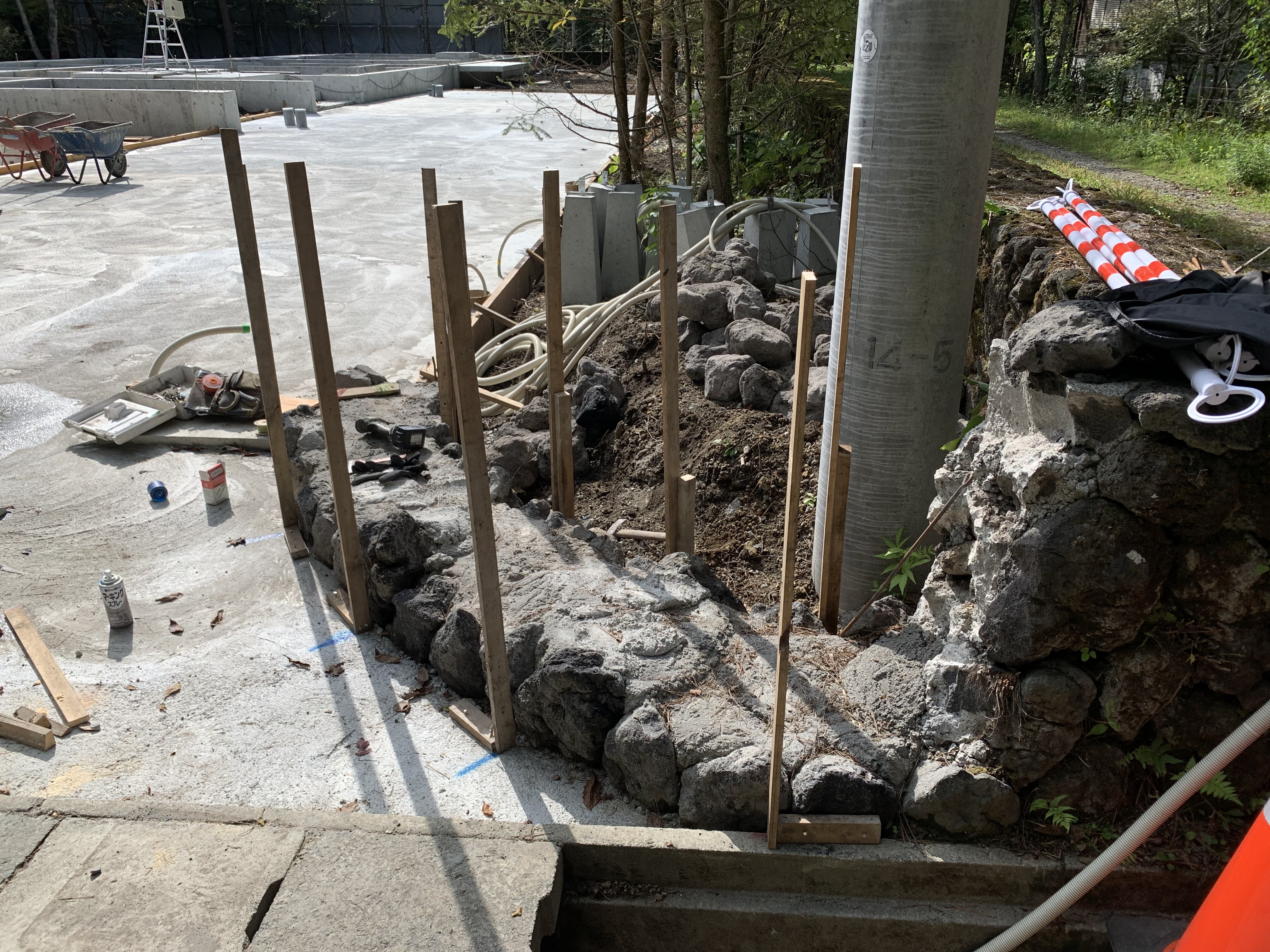 ダンプ、ユンボ、ミキサー、バイブ使用