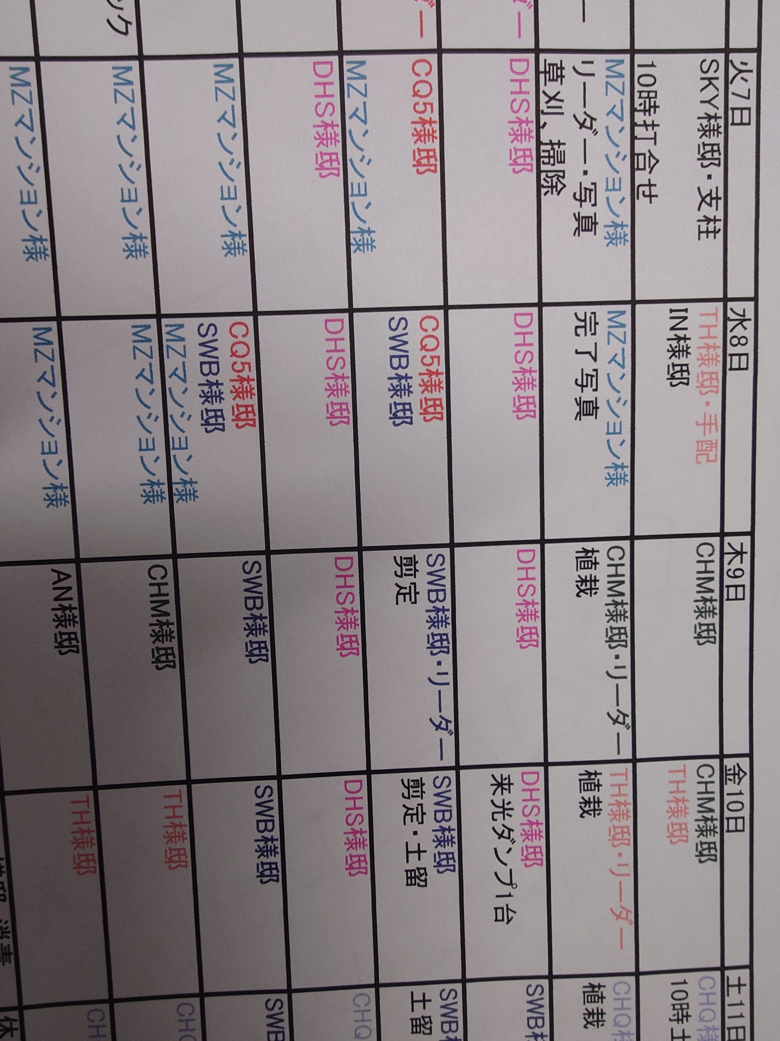 明日の打合せ資料作り、来週の週間スケジュール作り、周知。