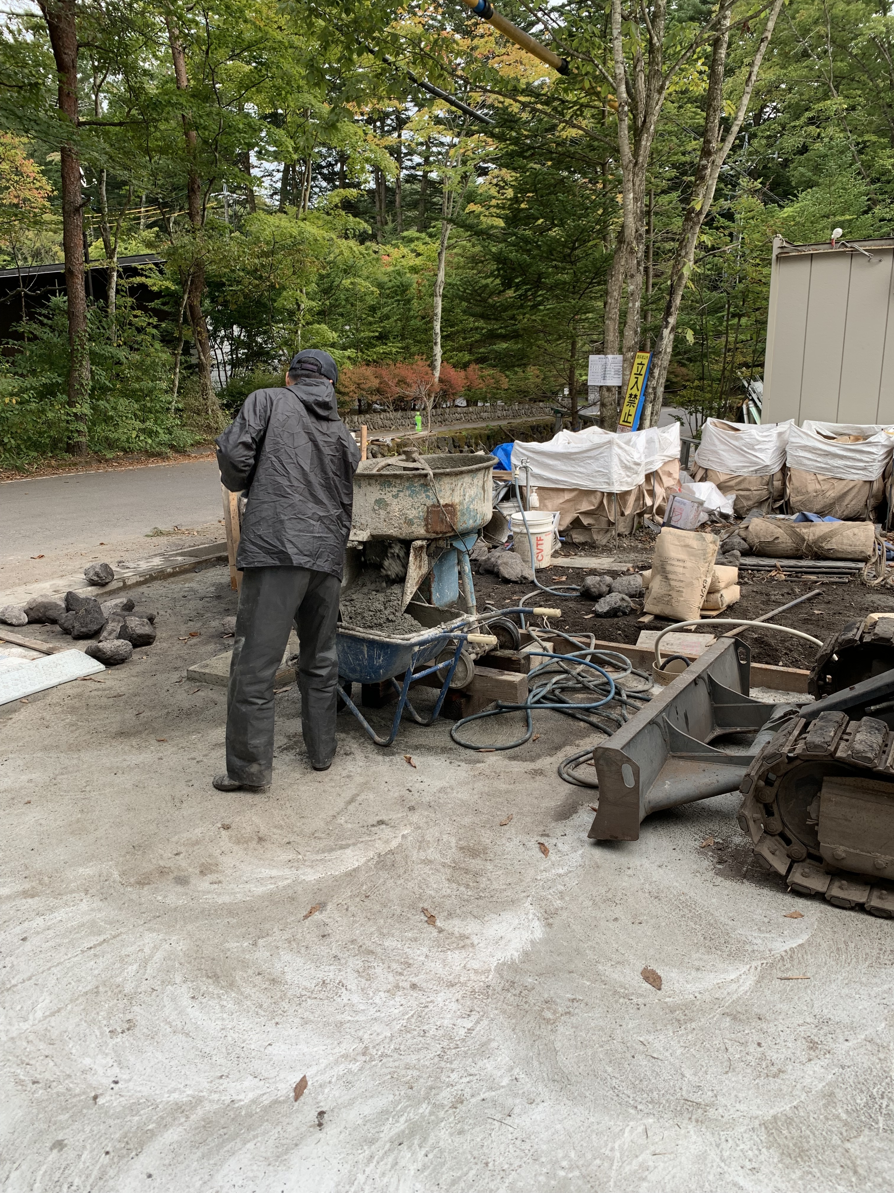 資材屋さんより砂1.0立米運搬、モルタル打設、洗い