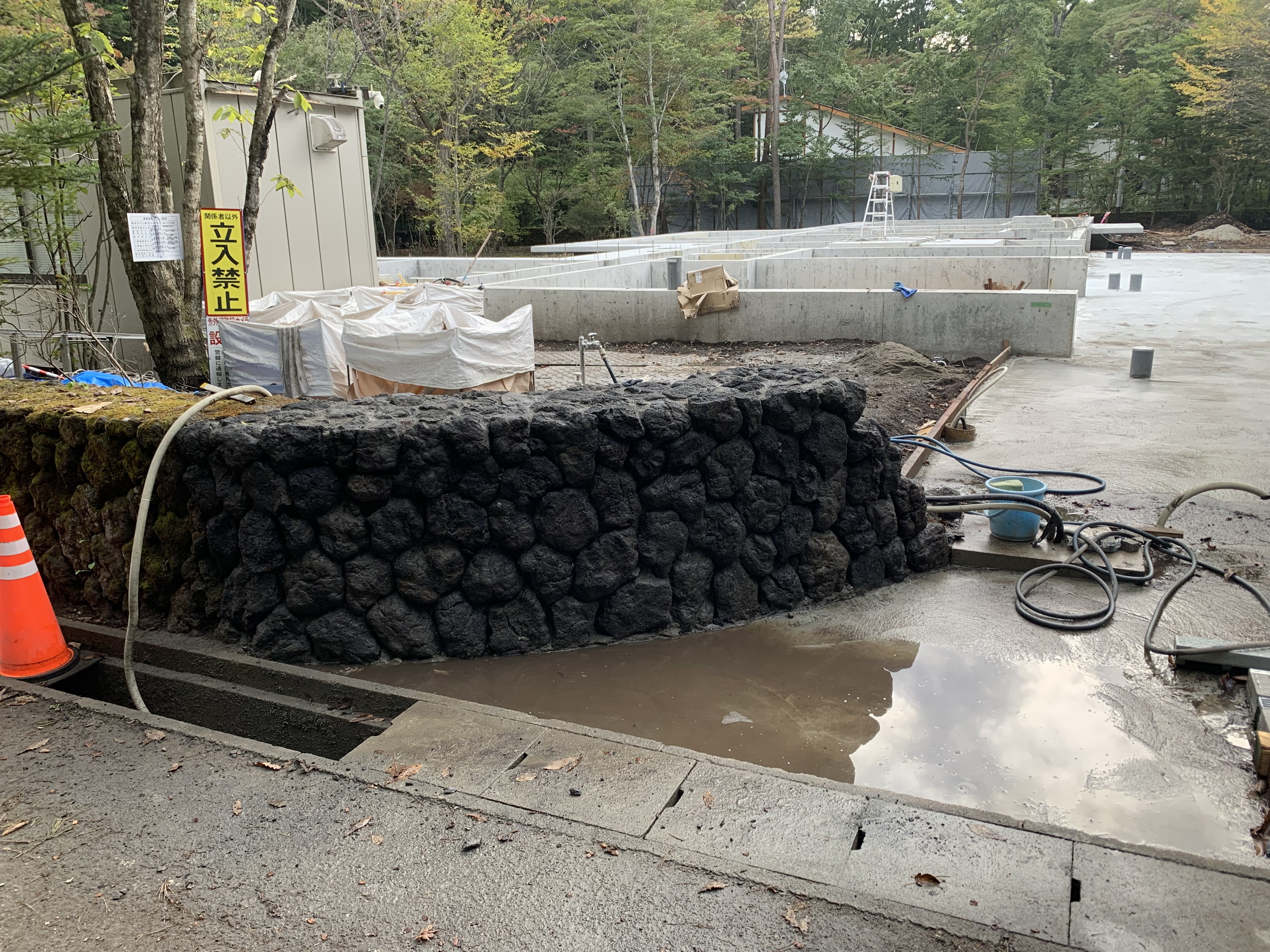 朝、置き場から天端用浅間石100個拾い出し現場へ運搬、石積み工(1段と天端完了)、資材屋さんから砂0.5立米運搬、モルタル打設、洗い、余った浅間石と砂を置き場へ運搬、ユンボを置き場へ回送、資材撤去、ミキサー等資材を会社へ運搬