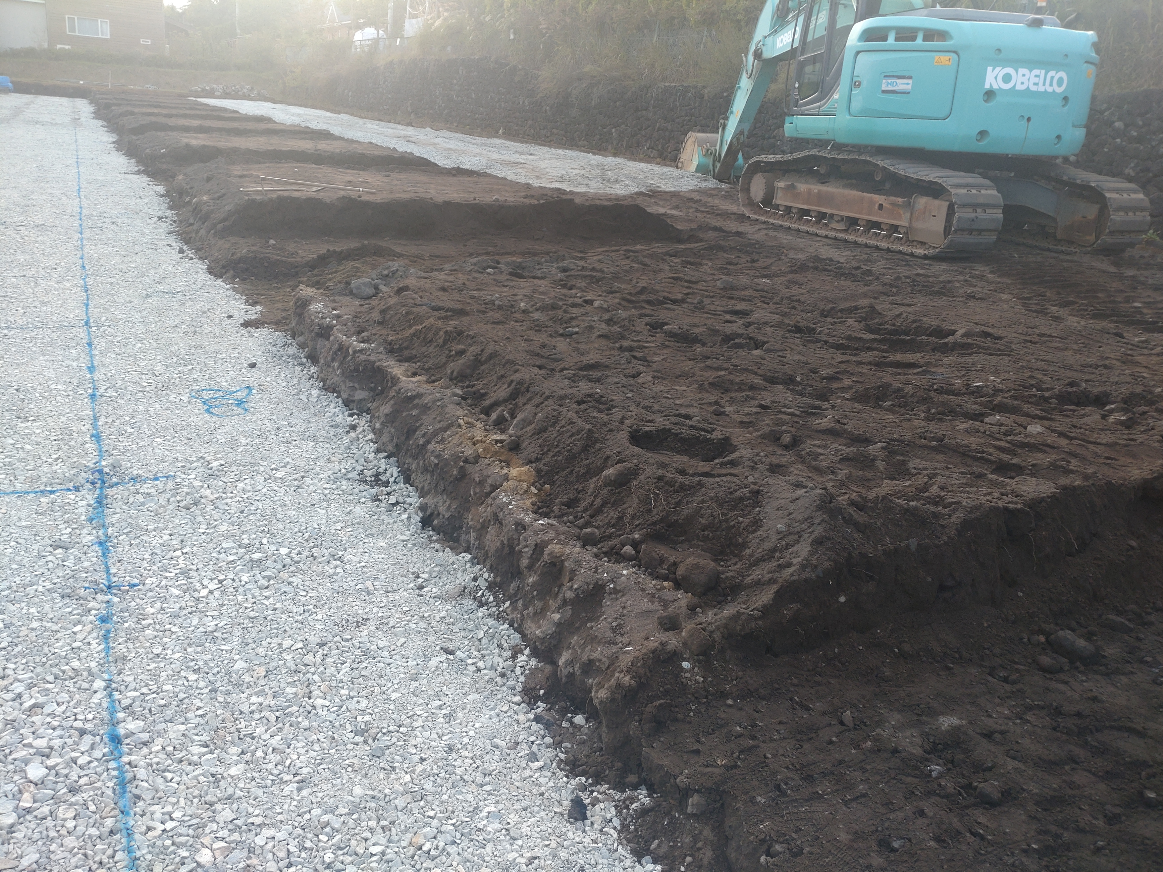 北側 駐輪場箇所路盤オートレベルで高さを確認しながら盛土、ローラーで転圧