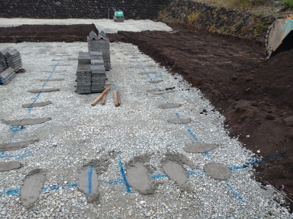 東側道路箇所オートレベルで深さ確認しながら路盤掘削補助