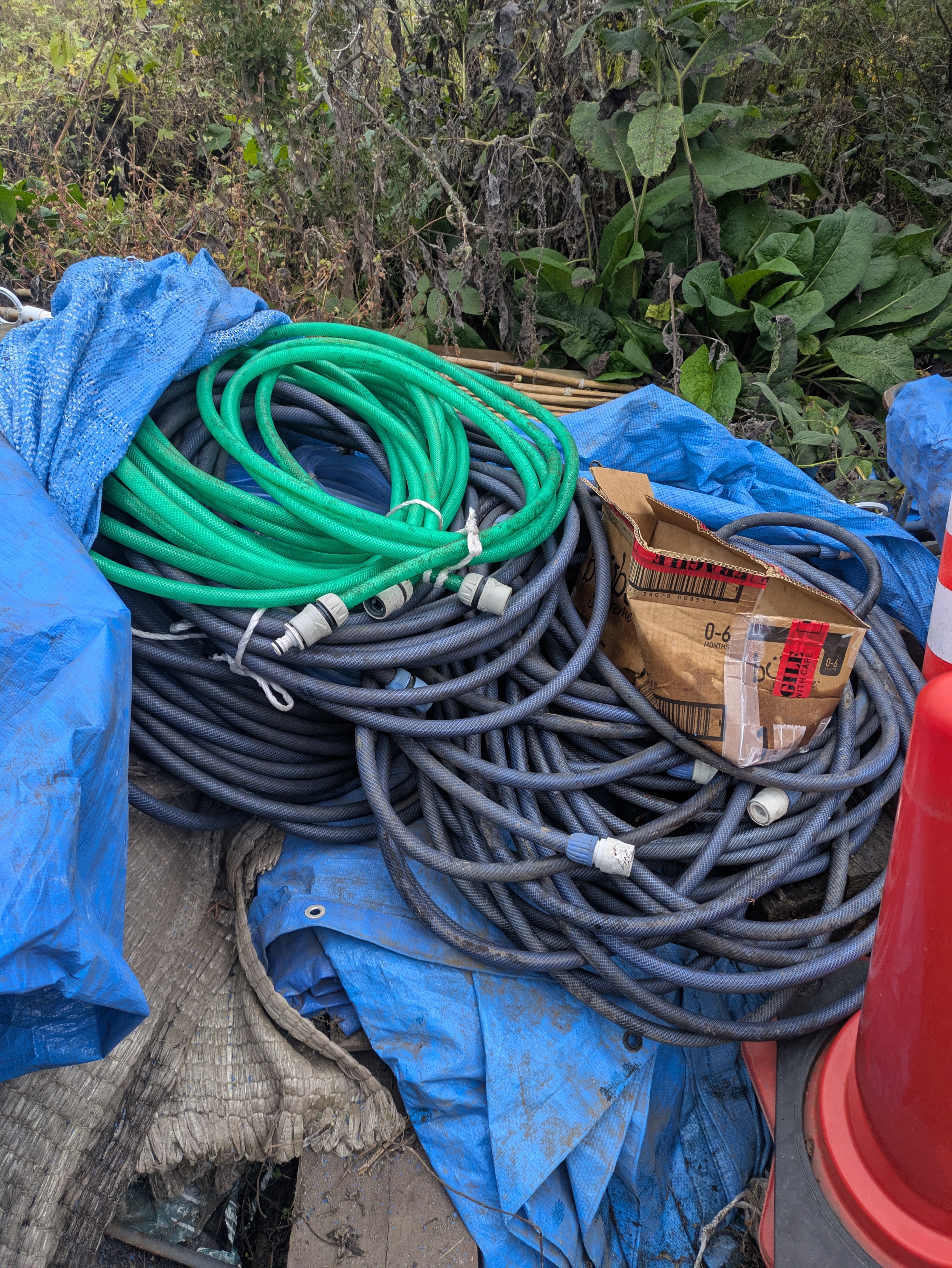 自社資材置き場へスプリンクラーのホースを下ろし戻る