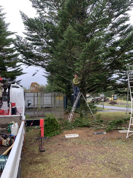 マンション管理(掃除、進入路及びタンク上の剪定、枯れ木伐採3本モミ、サクラ、カツラ)