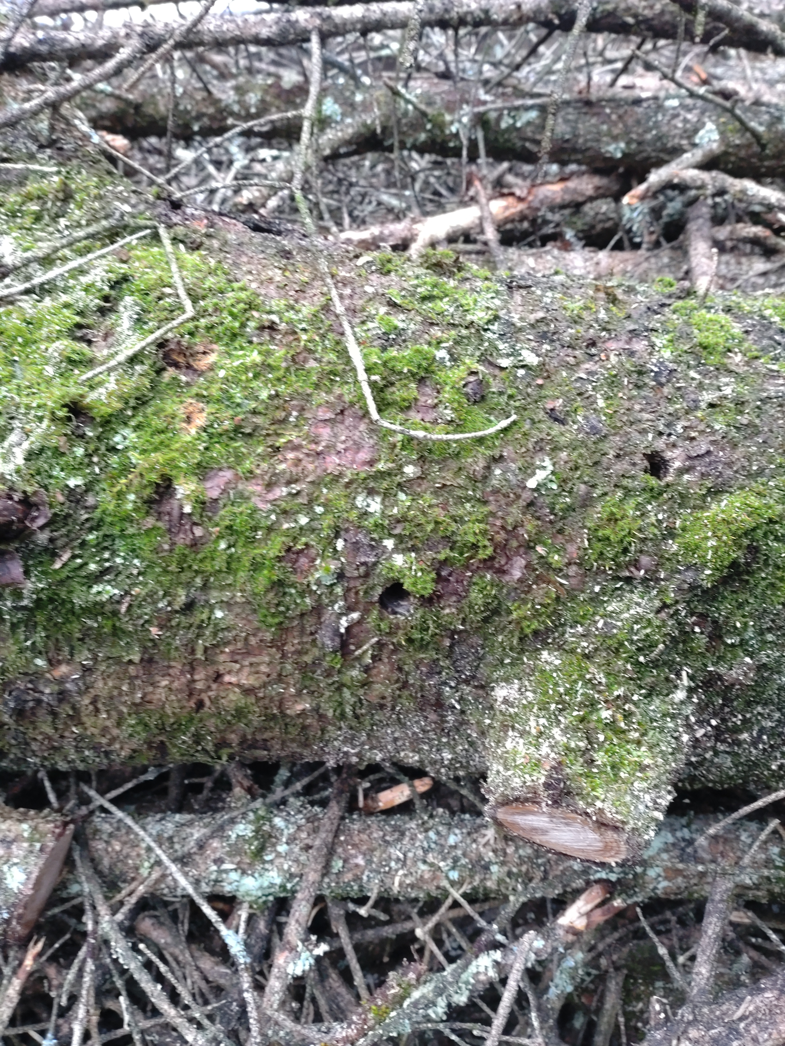 上半分枯れたモミの伐採補助、枝、幹片付け場内運搬