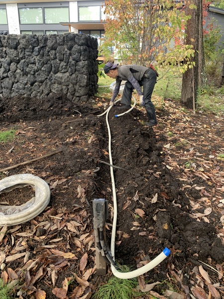 植栽(アセビ1本)、電気管埋設(約24m掘削、設置、埋め戻し)