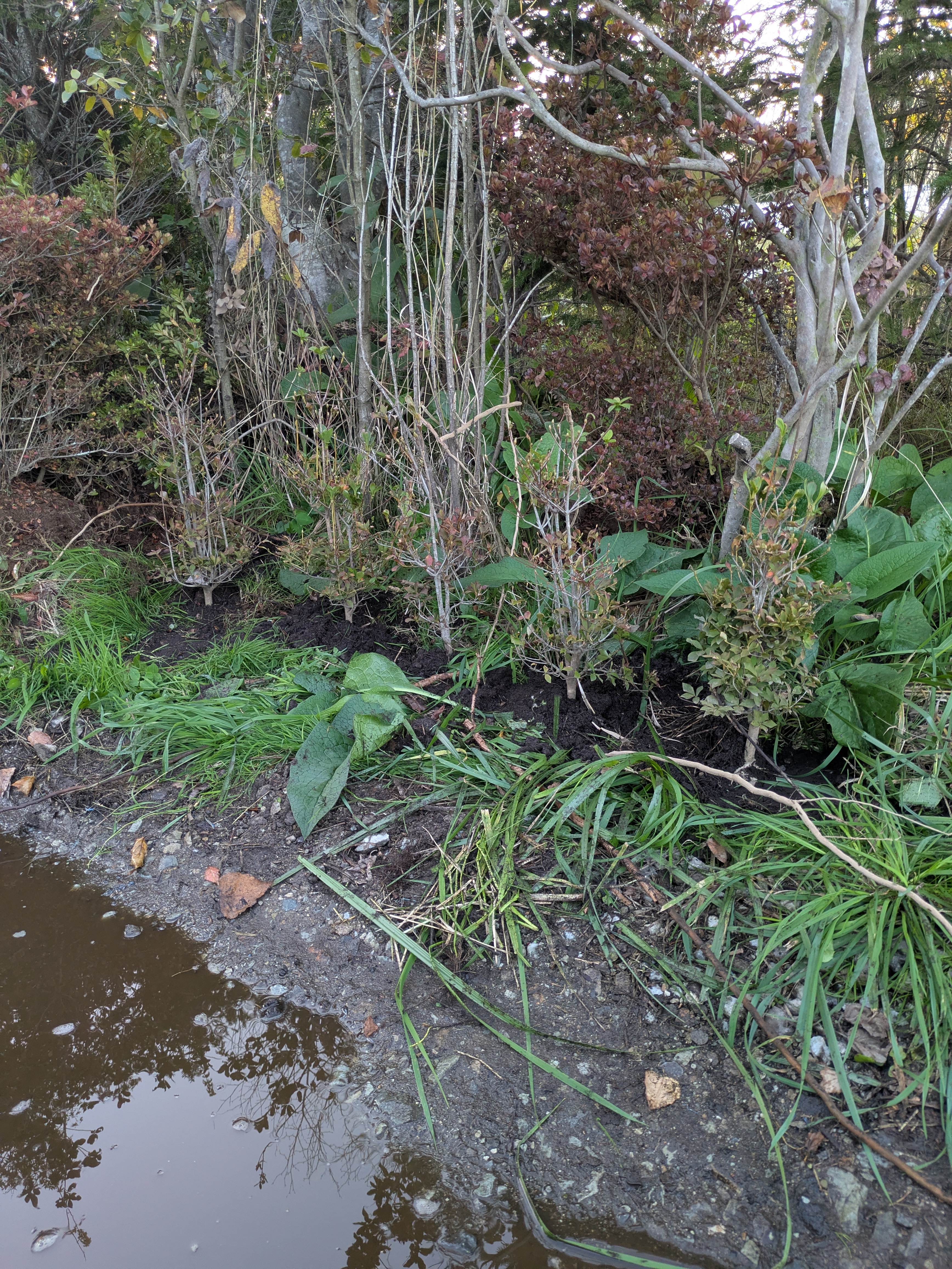 昨日運んで来たドウダンツツジ5本余りを借り植えして終了です。