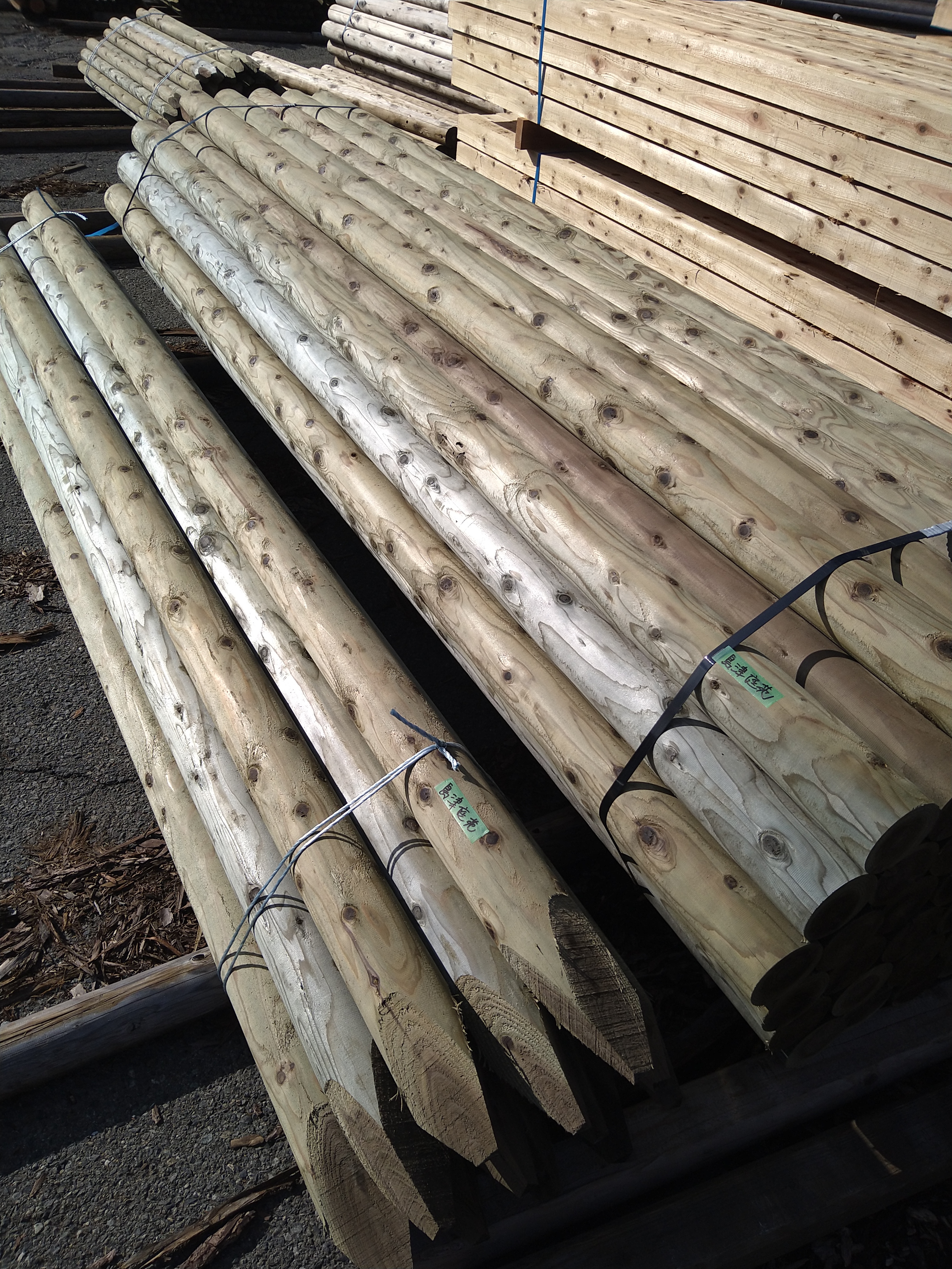 ユニックに杭12本と3㍍丸太を50本積み込みました!