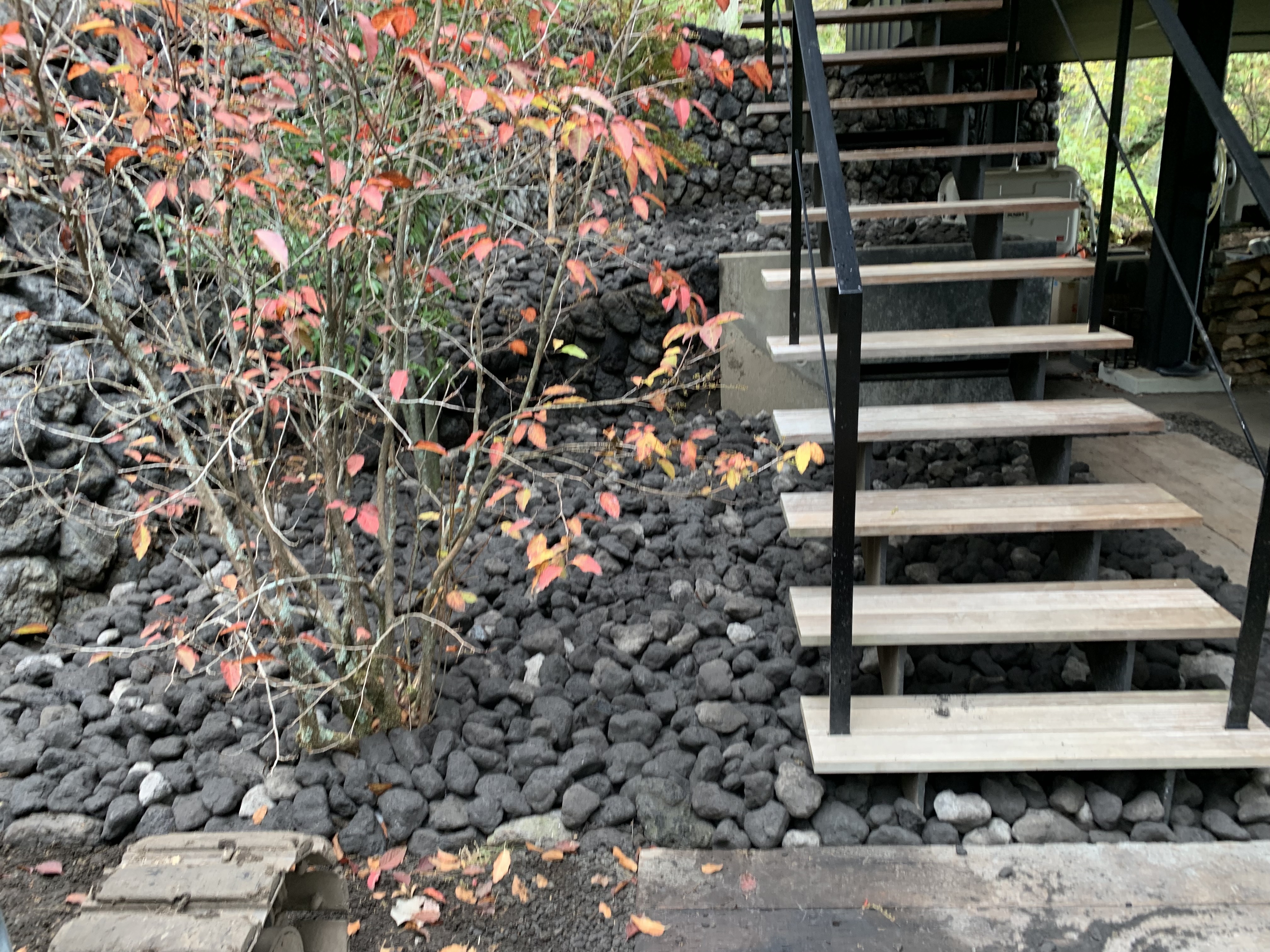 朝、石材屋さんから浅間ゴロ石2立米積み込み現場へ運搬