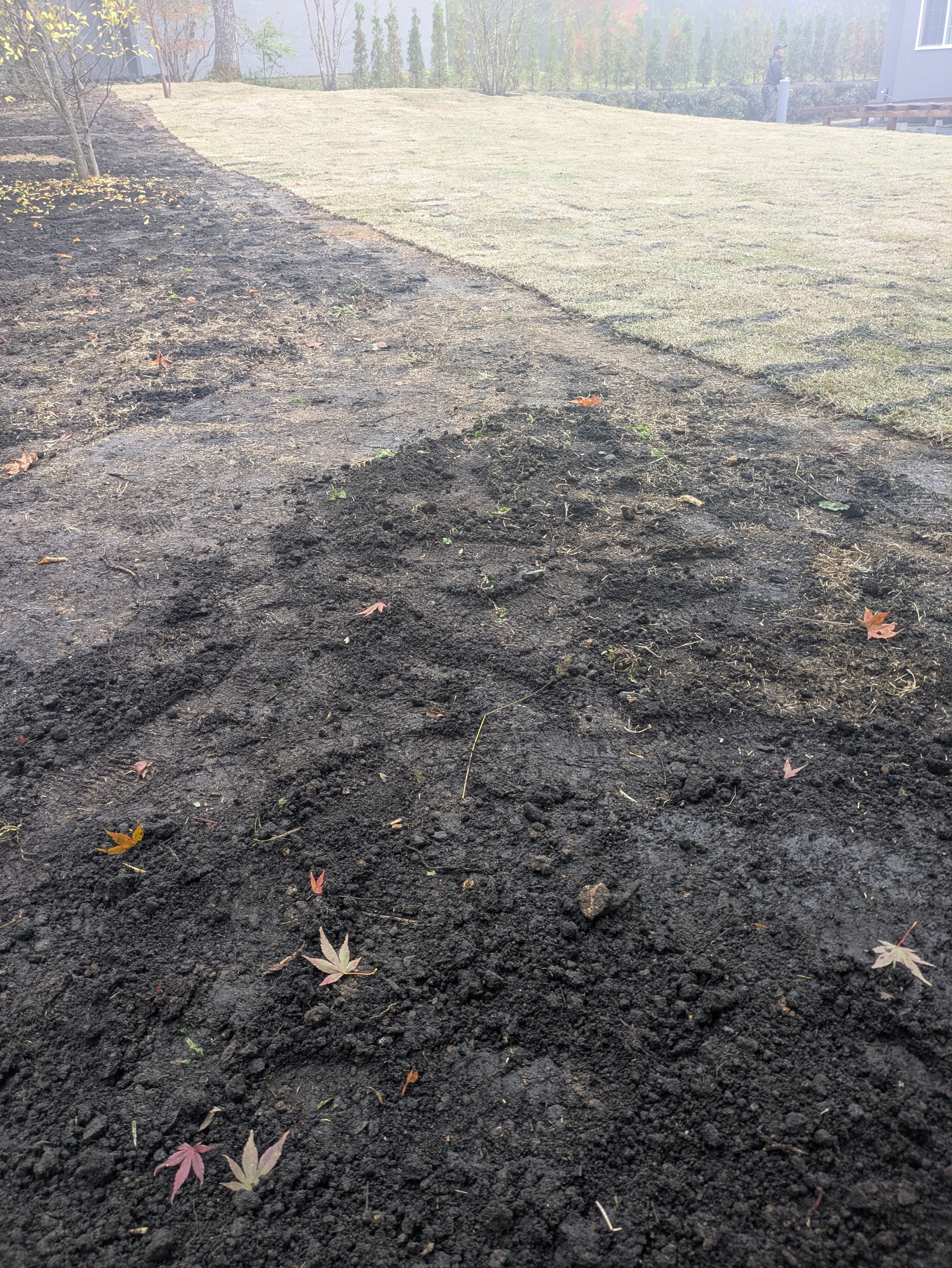 芝運び 芝張り芝の乗ってきたパレットダンプ積み込み