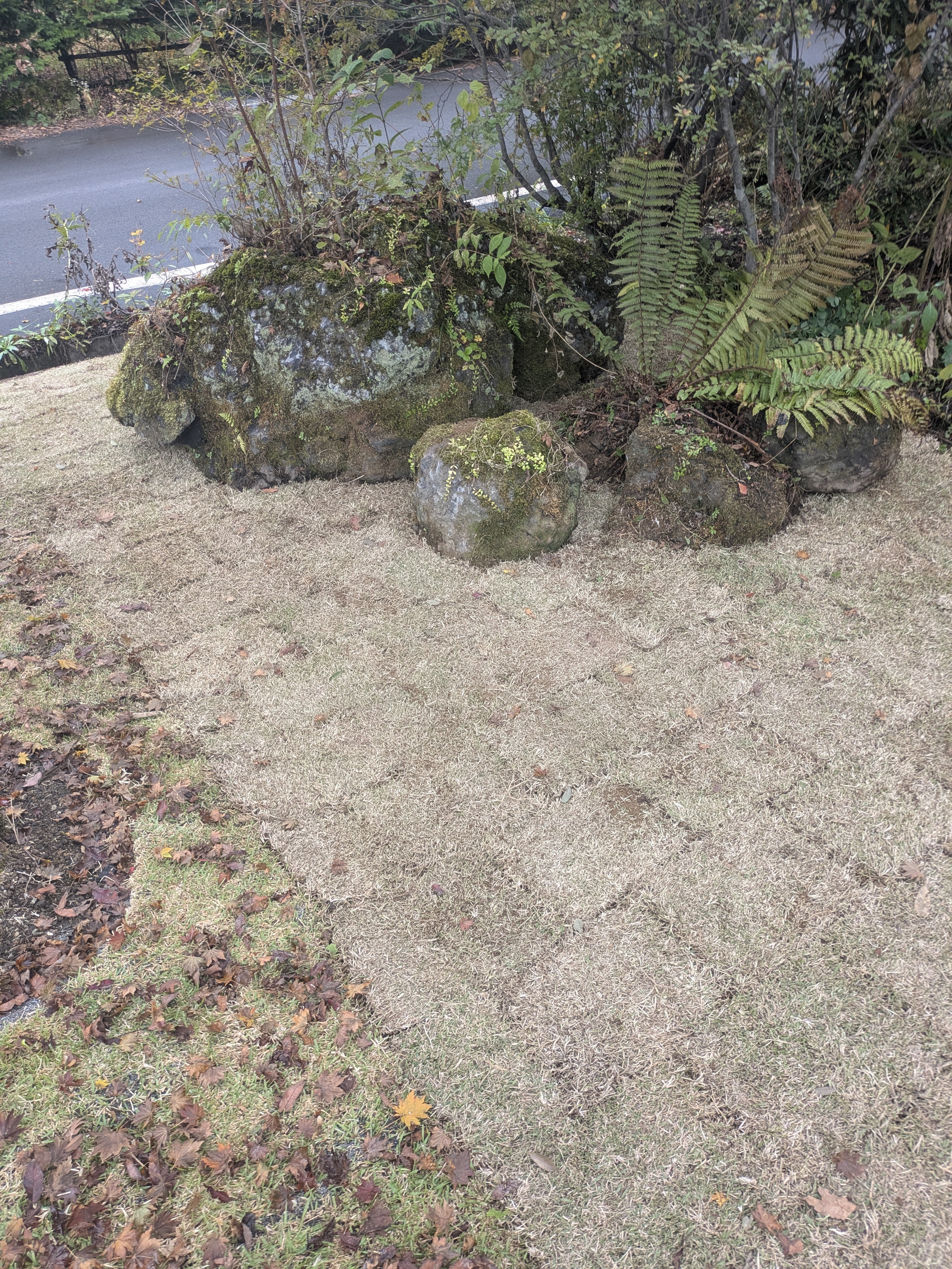 最終で、自社資材置き場へ芝の切りくず、パレットを下ろして終了です。