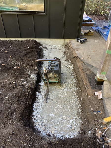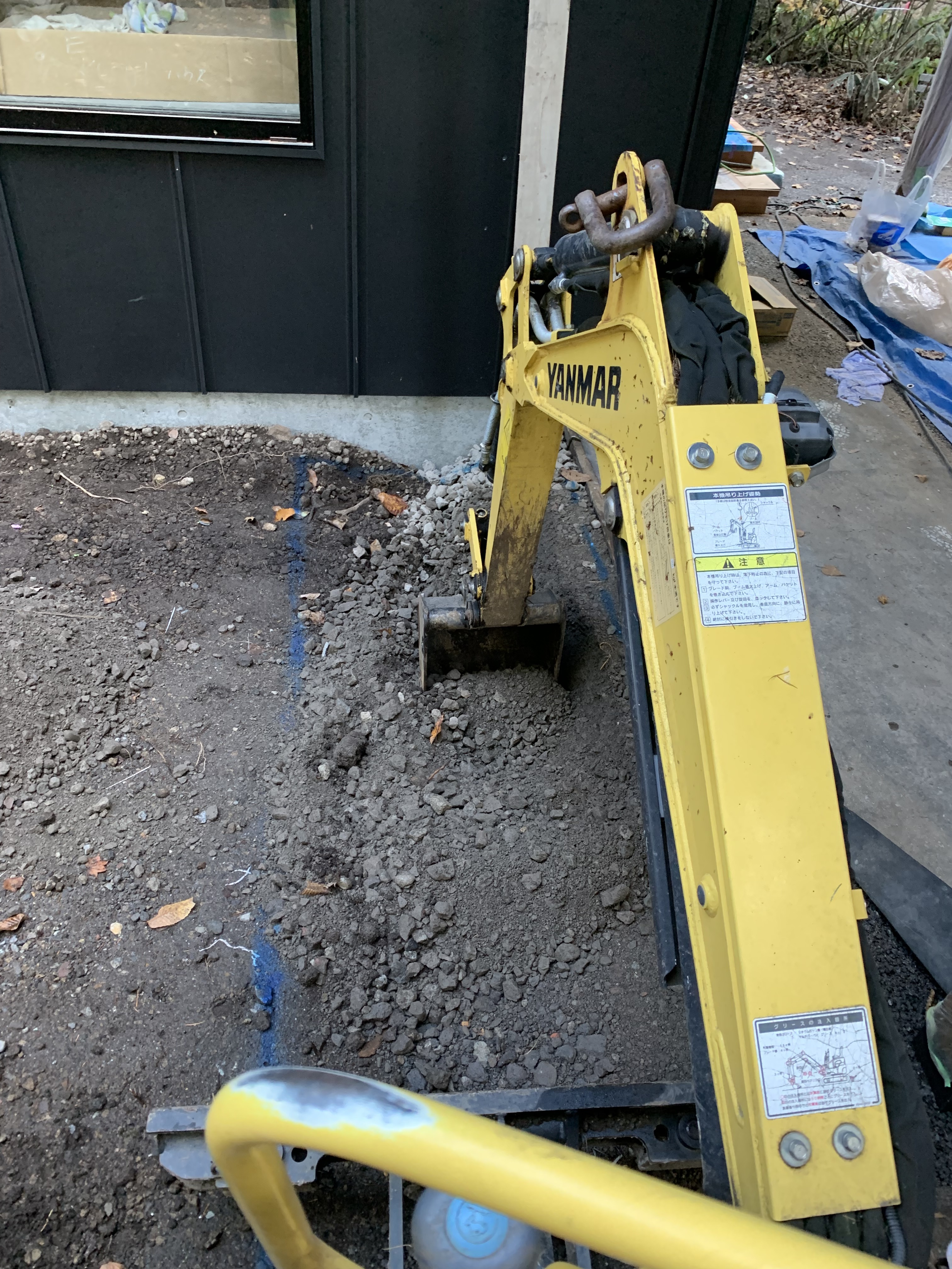 ダンプ、ミニユンボ、プレート、ミキサー使用