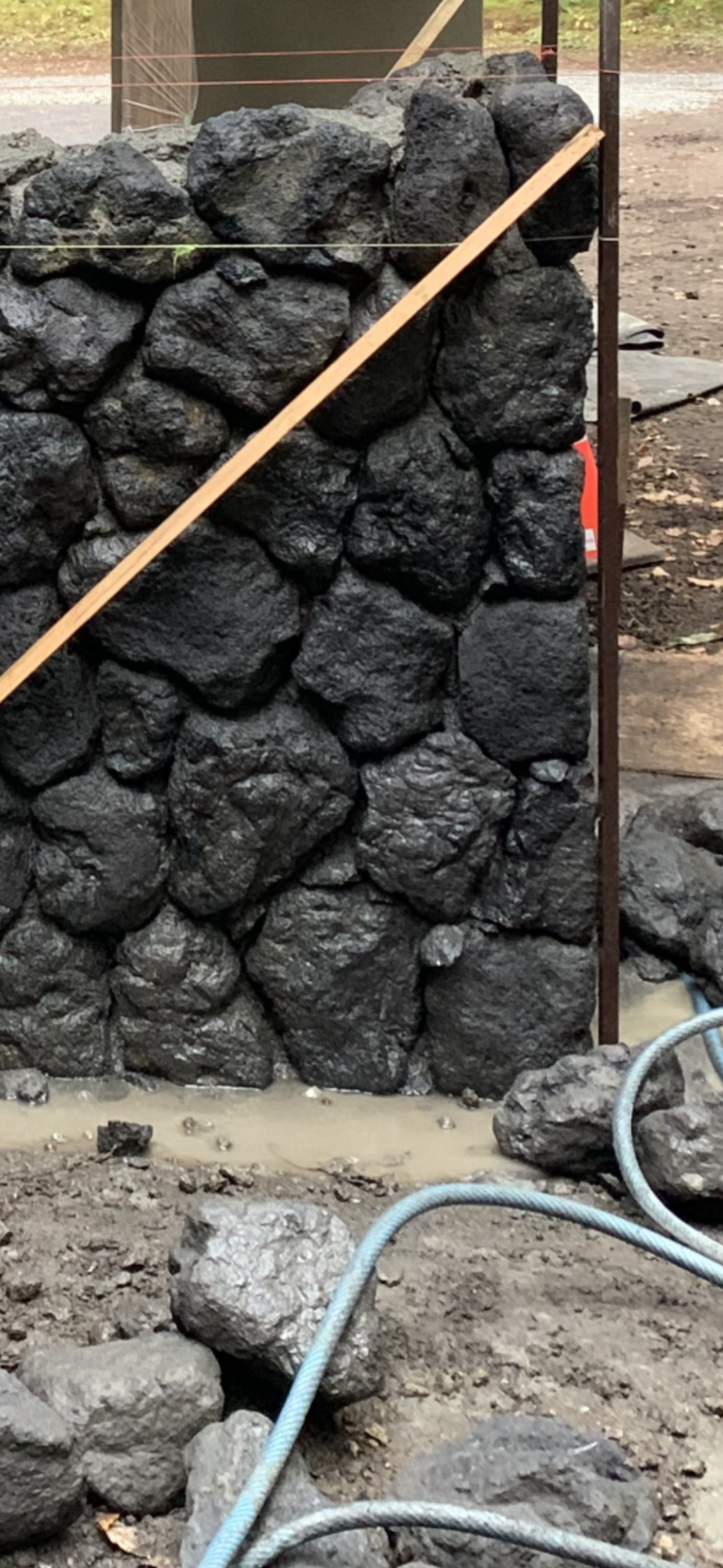 norさんが積んだ石積み モルタル打設 石積みの周りのモルタル掃除。 少しの時間しか作業できなくて すみませんでした。