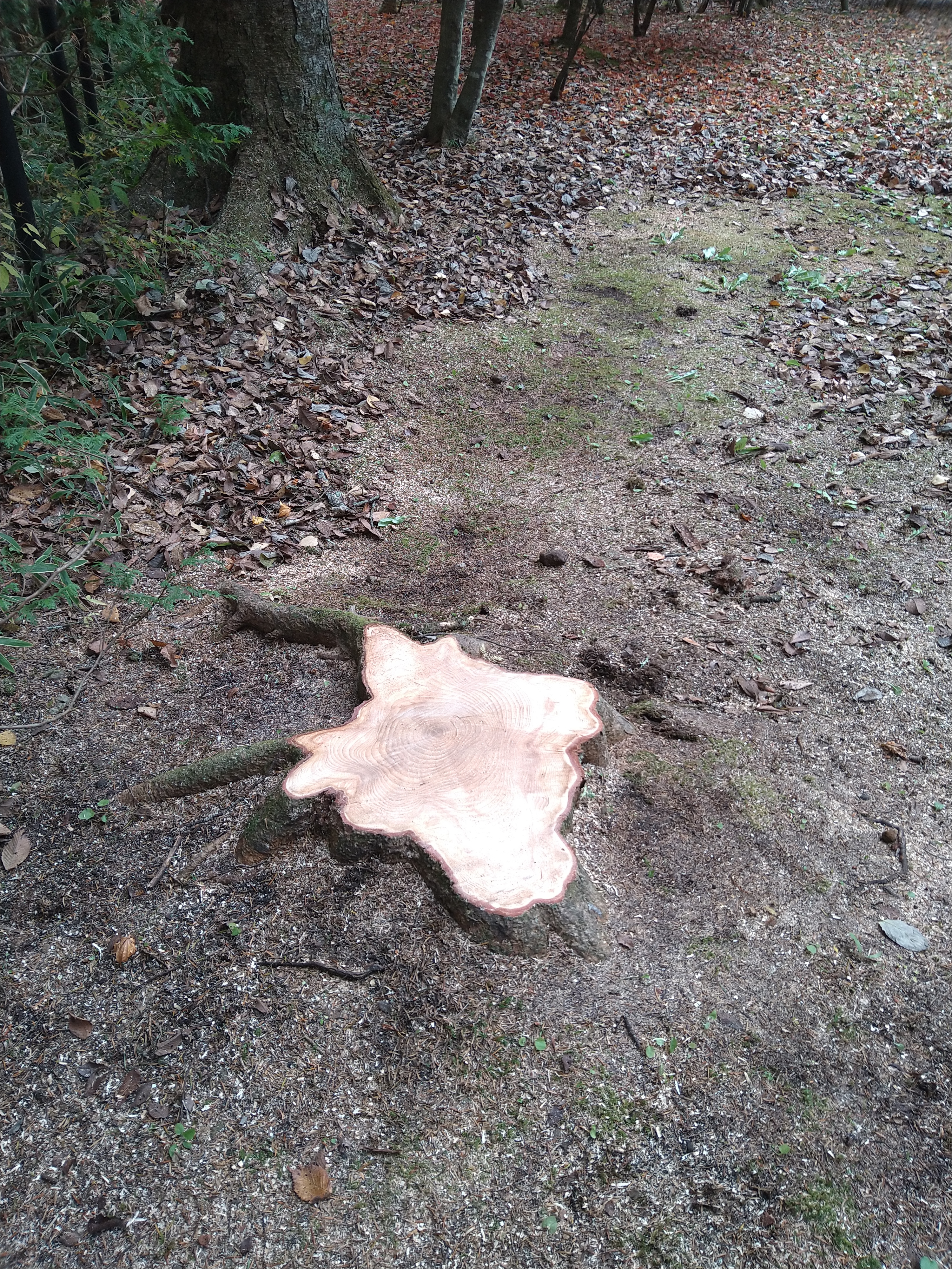 8時から4名で枯れたモミの木を登り切りで少しずつ枝と幹をバラしてロープで下に下ろしてダンプに積み込みました!