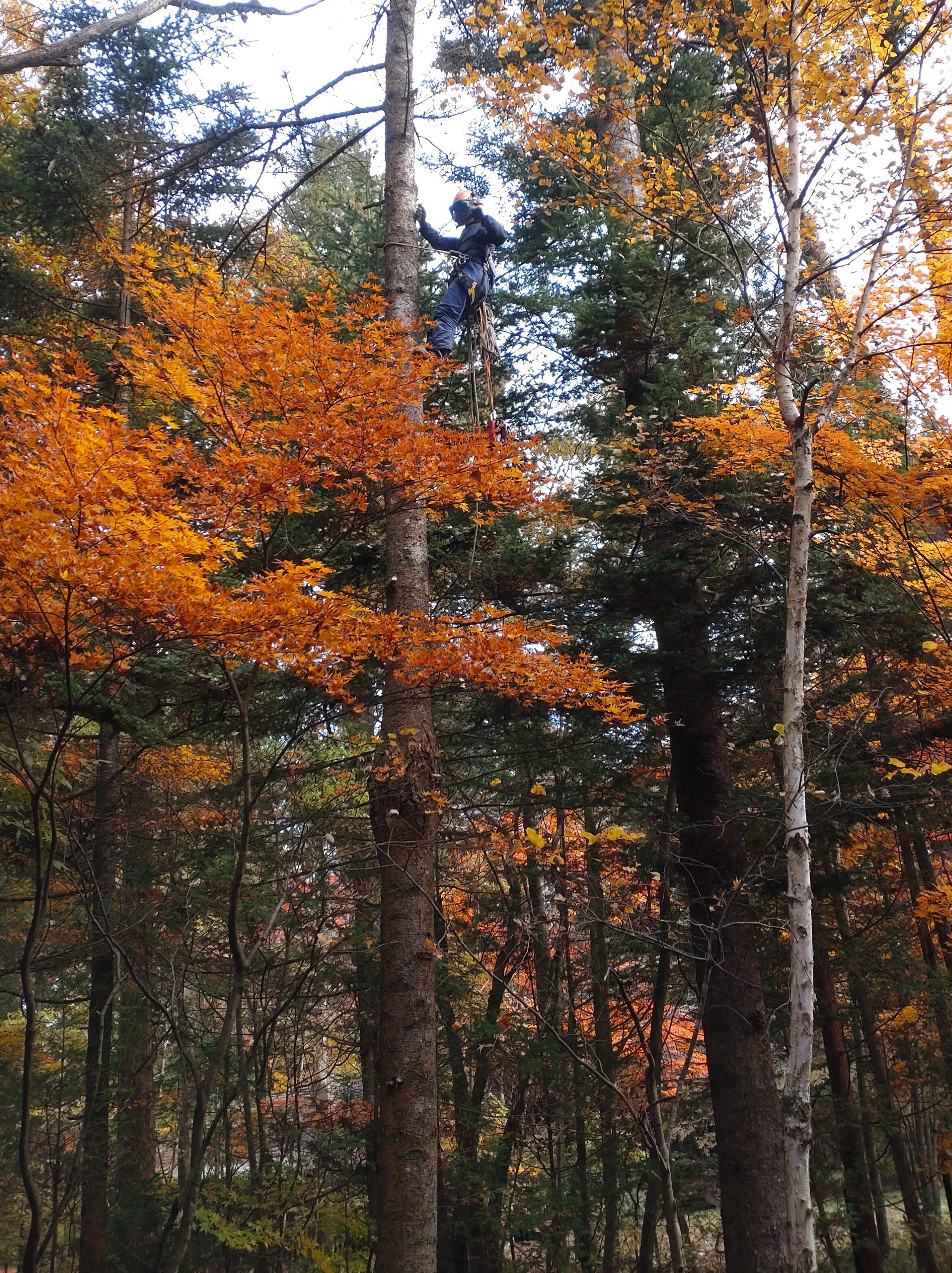 枯れたモミ1本伐採補助(norさんがのぼり切りをし枝払い、幹を