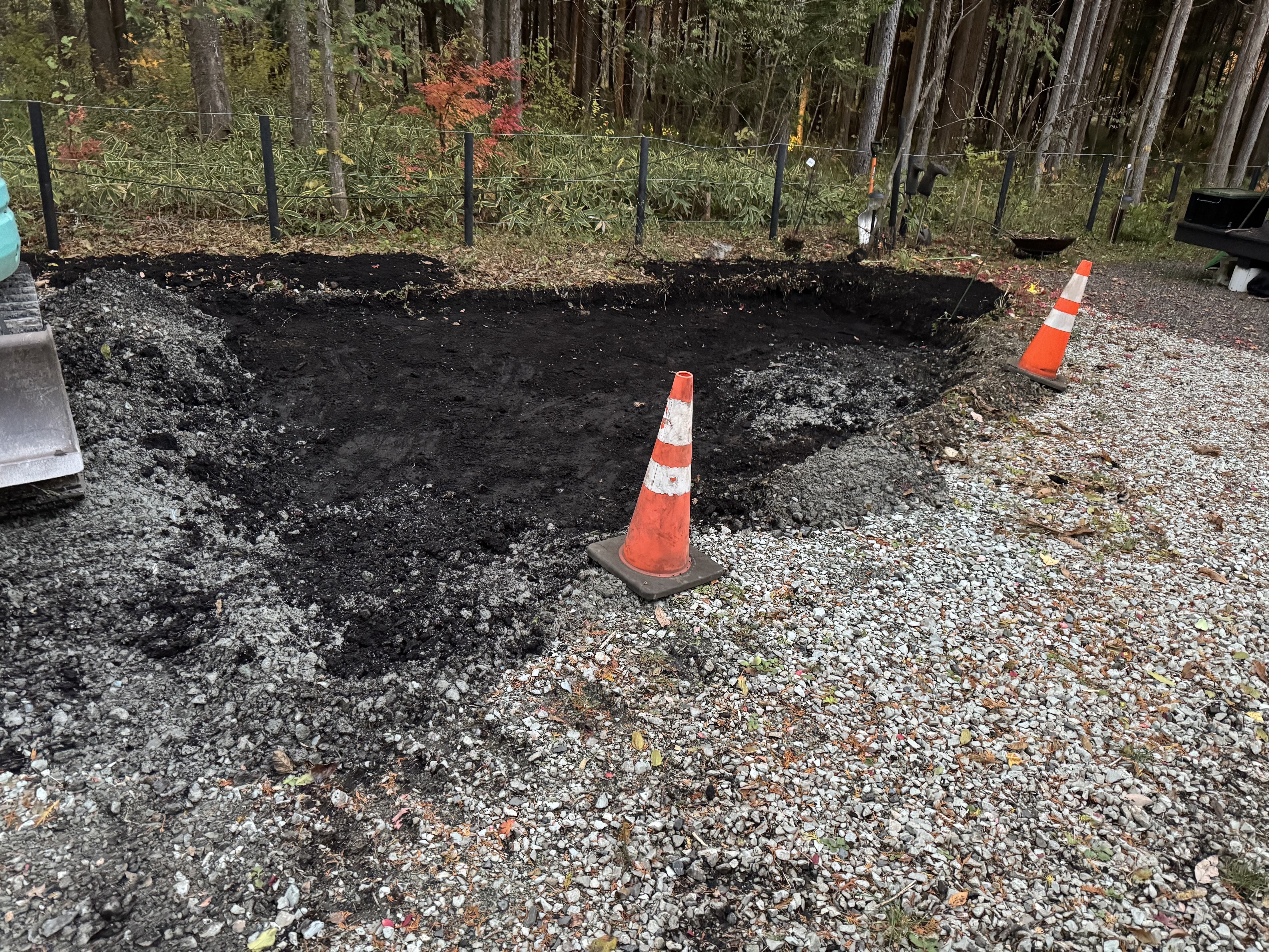 7時40分から15時、PAT様邸、路盤のビリ敷き、材料屋から2m3、置場から2台。土曜日からトータル10m3、ローラー、ユンボ回送