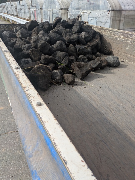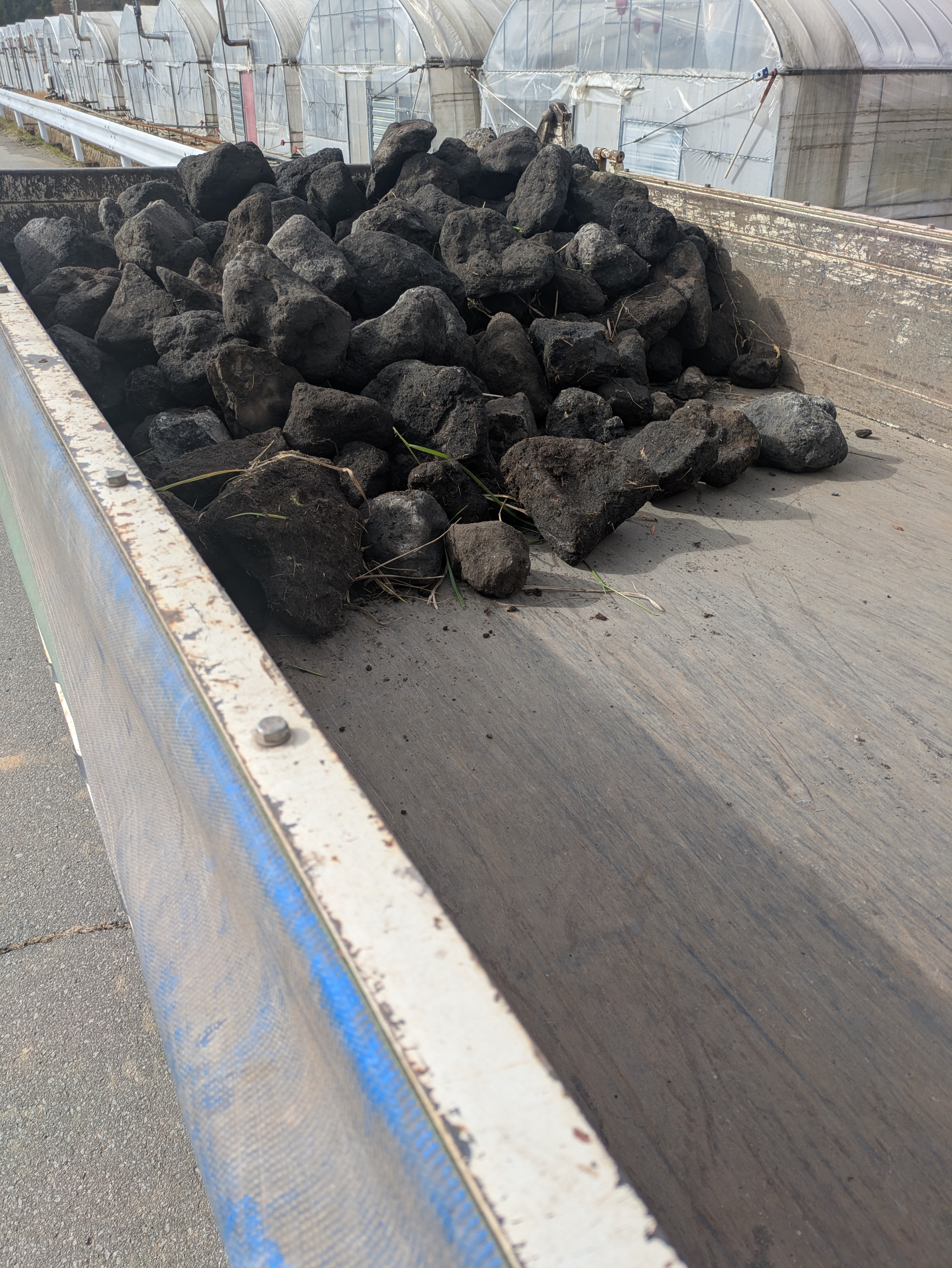 自社資材置き場の砂利やらビリやら混じった使えそうにない材料を積み込み(ダンプに半分位)グリの足しに!