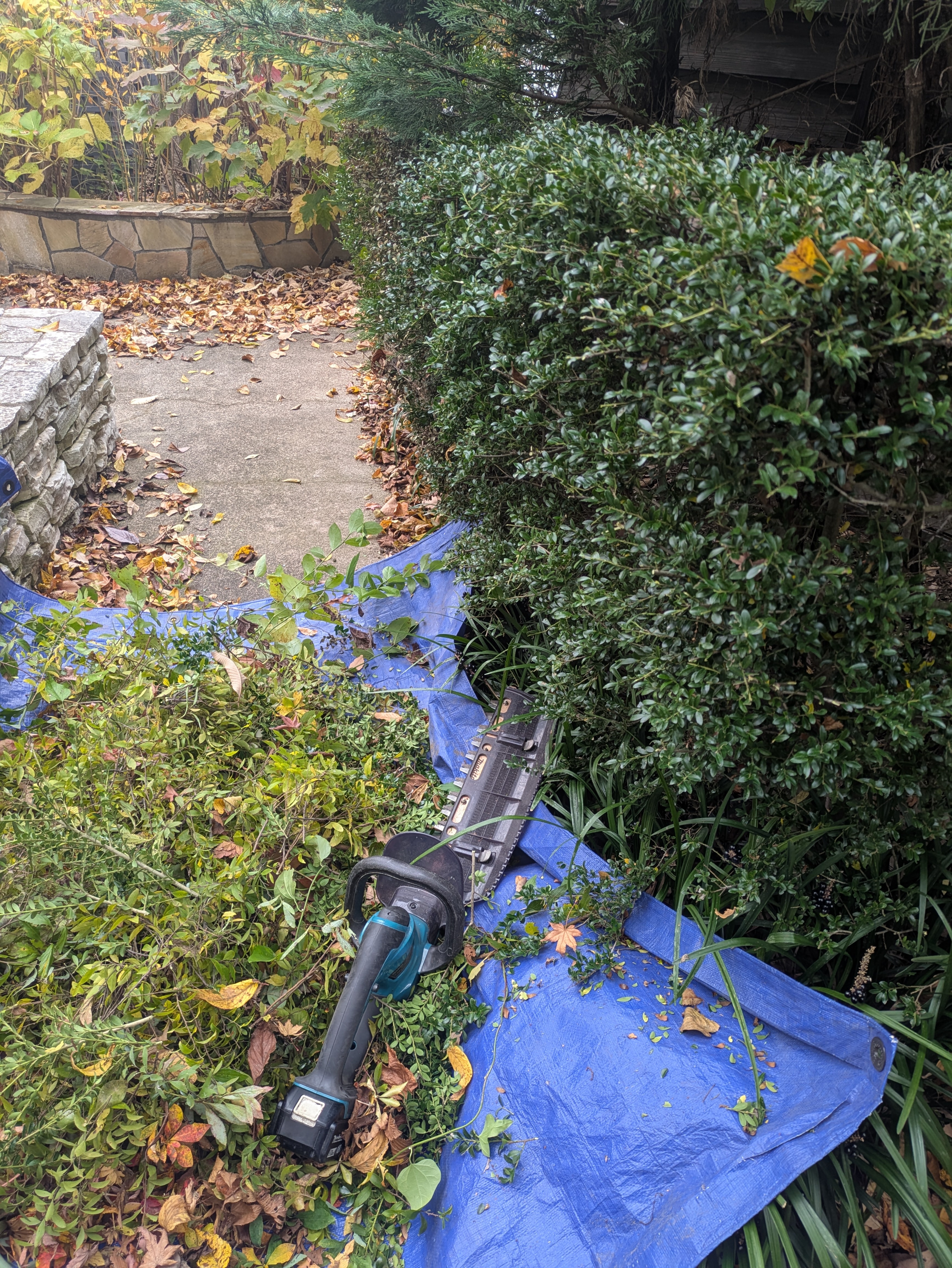 会社でユニックに乗り換え剪定道具一式を積んで移動