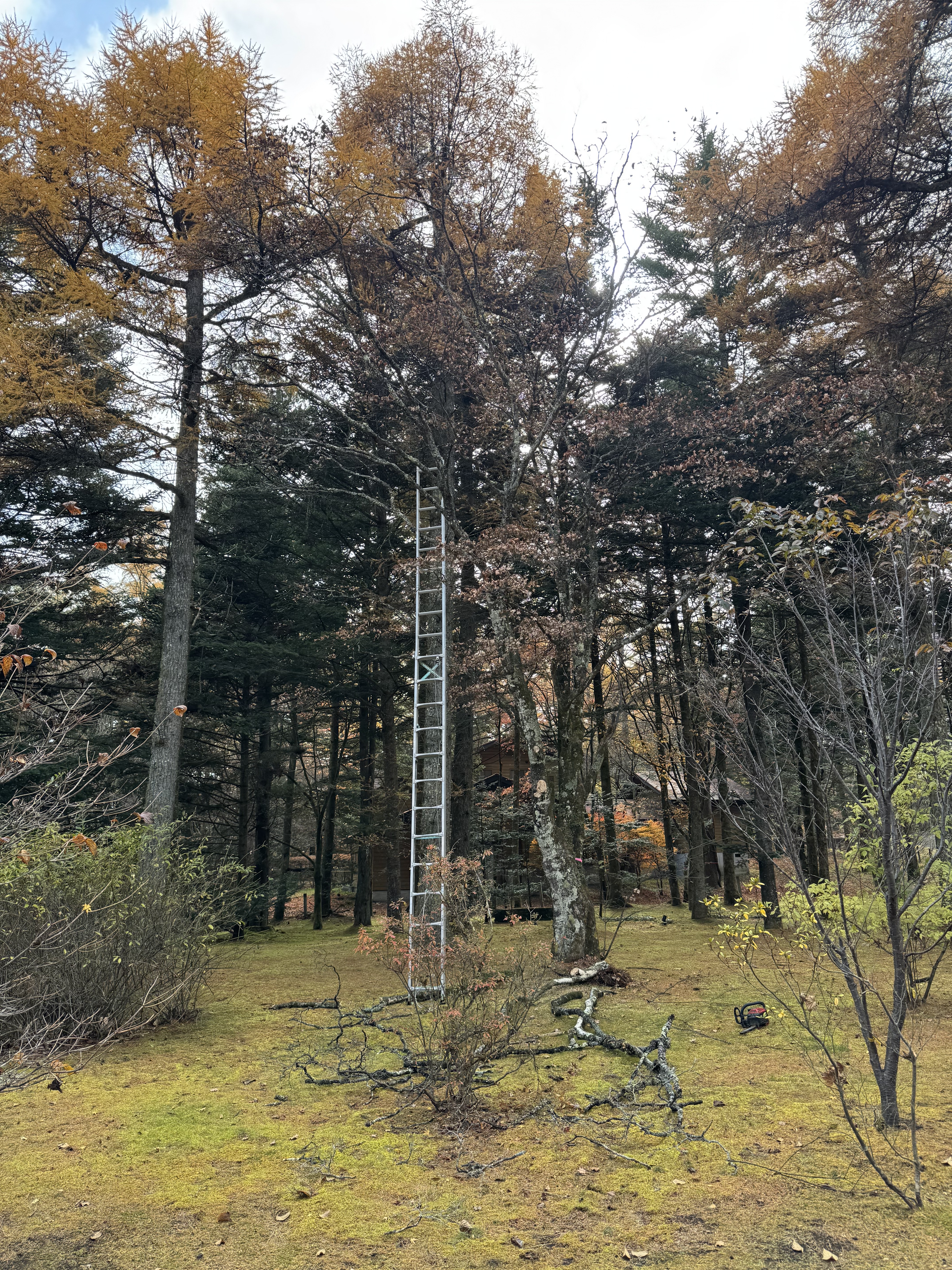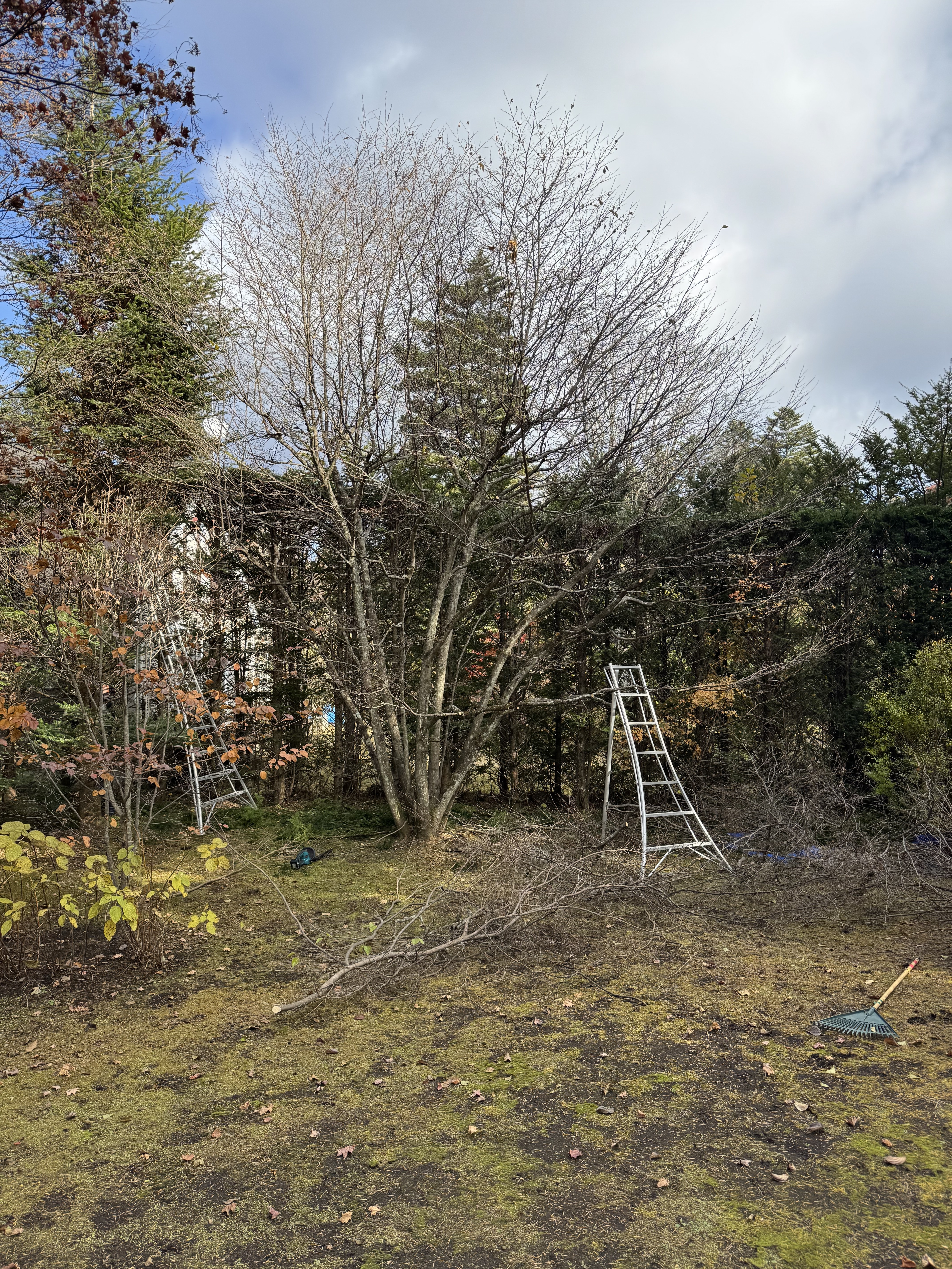 7時40分から16時15分、CKI様邸、ツツジ、イチイ、マサキの刈り込み、モミ、モミジ、カツラ、エゴ、他、剪定