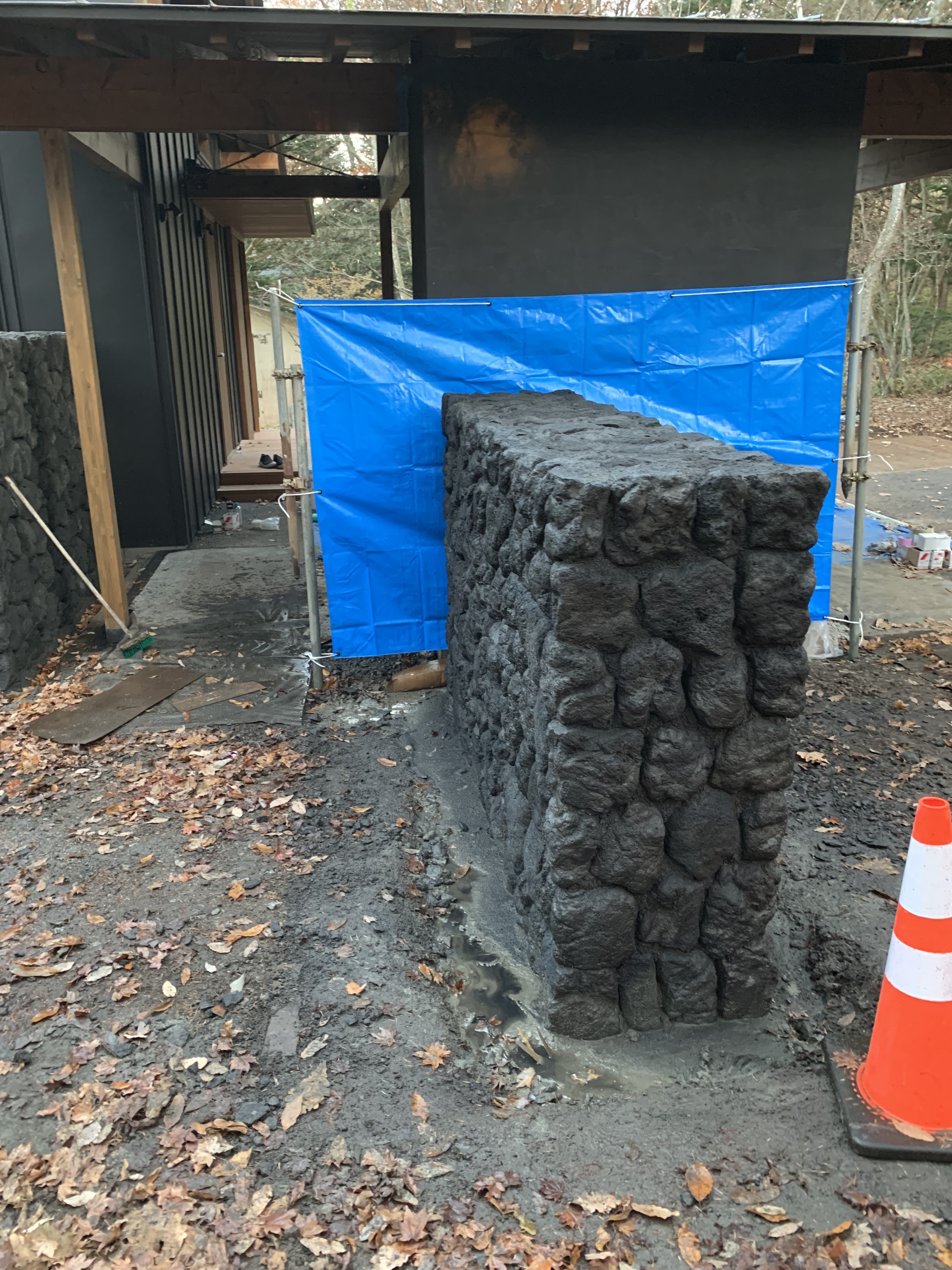 石積み(天端石敷き詰め)、目地埋め、余った浅間石を置き場へ運搬