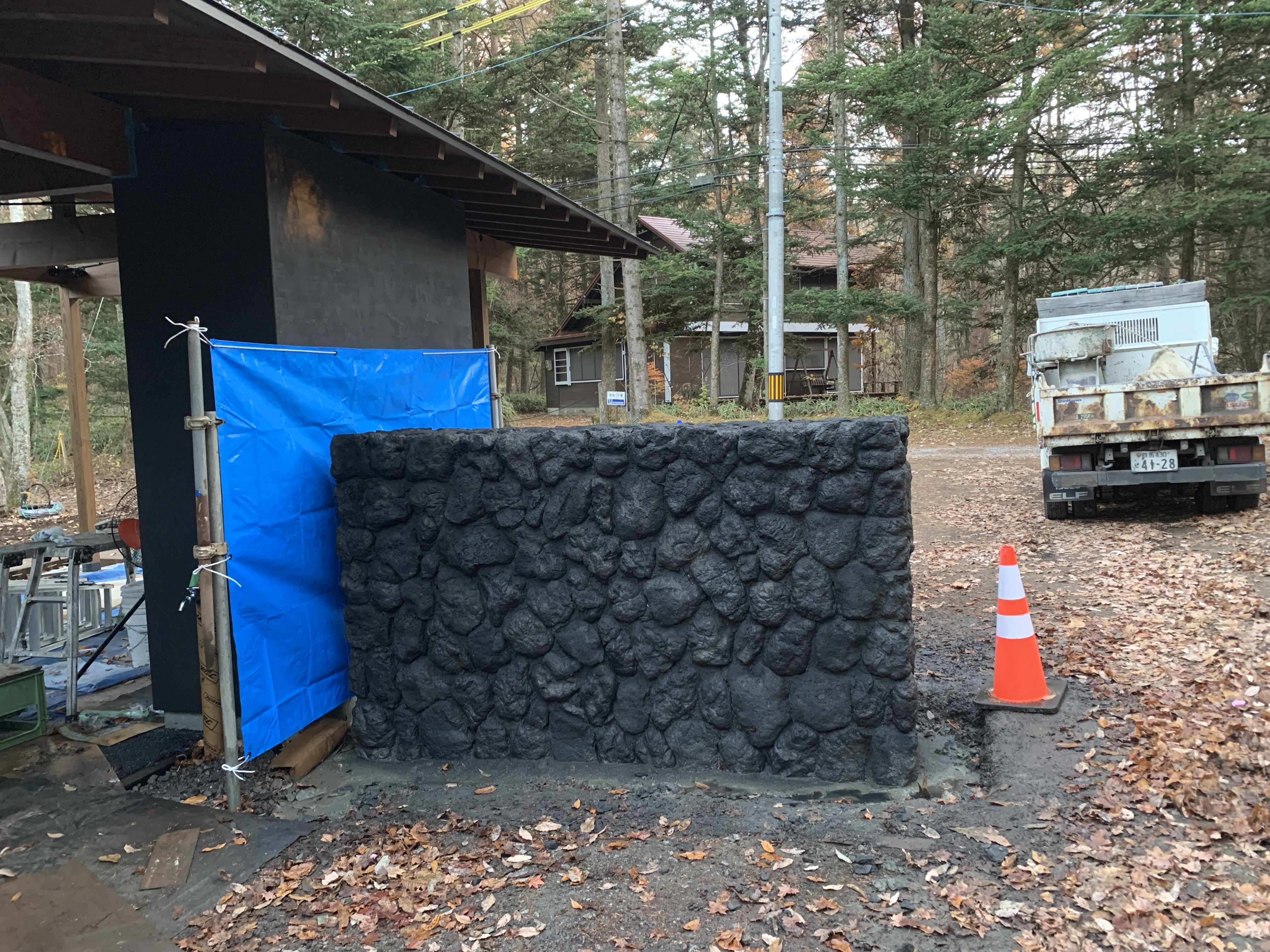 現場へ戻り石積み仕上げ、ミキサー等資材を積み込み会社へ運搬
