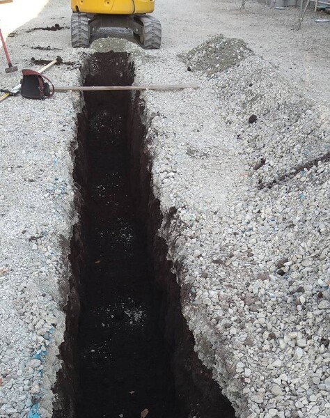 使用機材 バックホー、ダンプ、ローラー、オートレベル