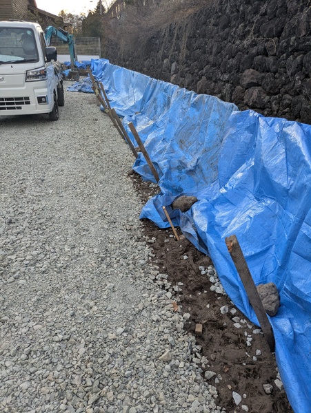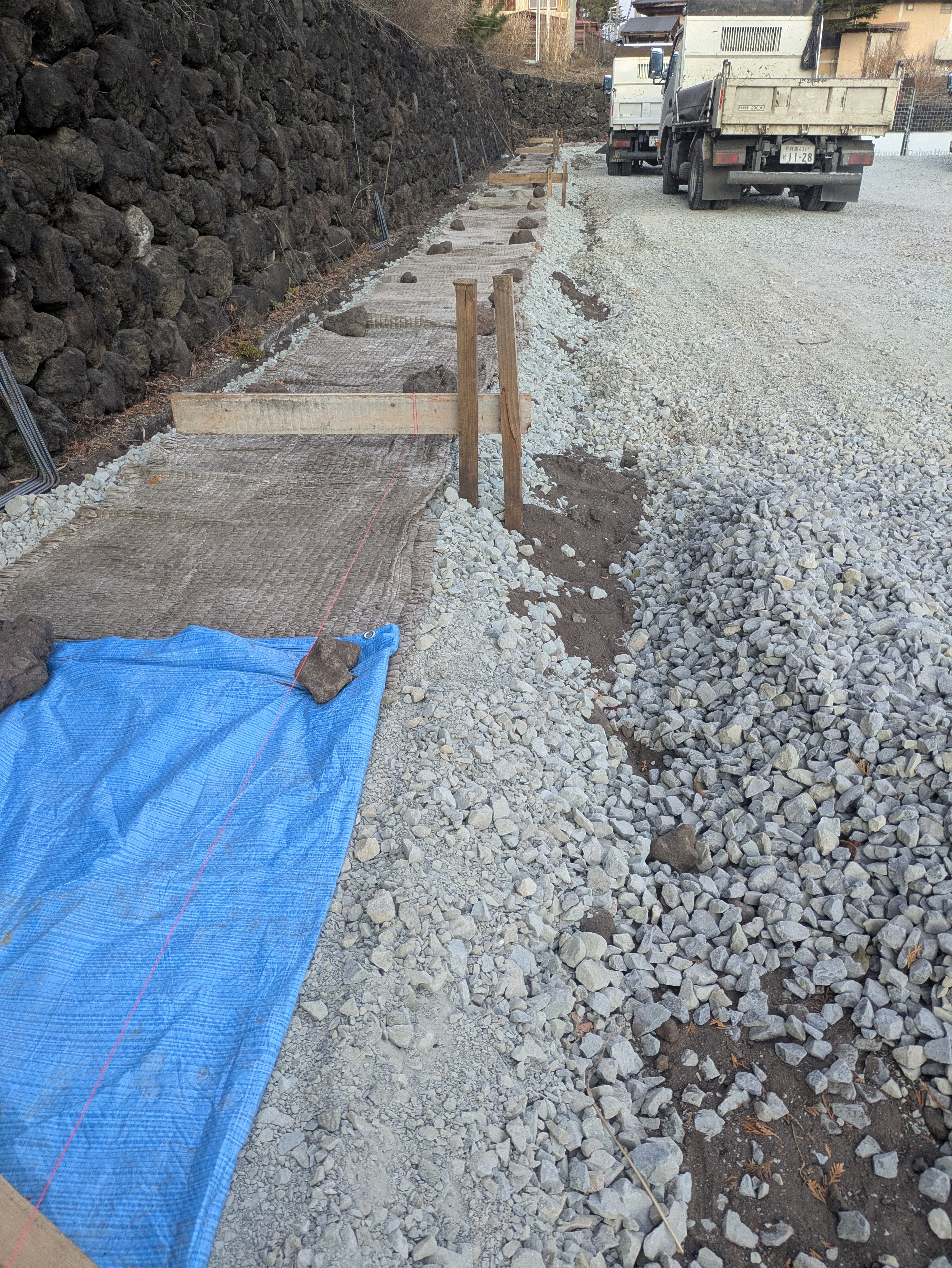続きのベースの床付け砕石入れ 慣らし 転圧