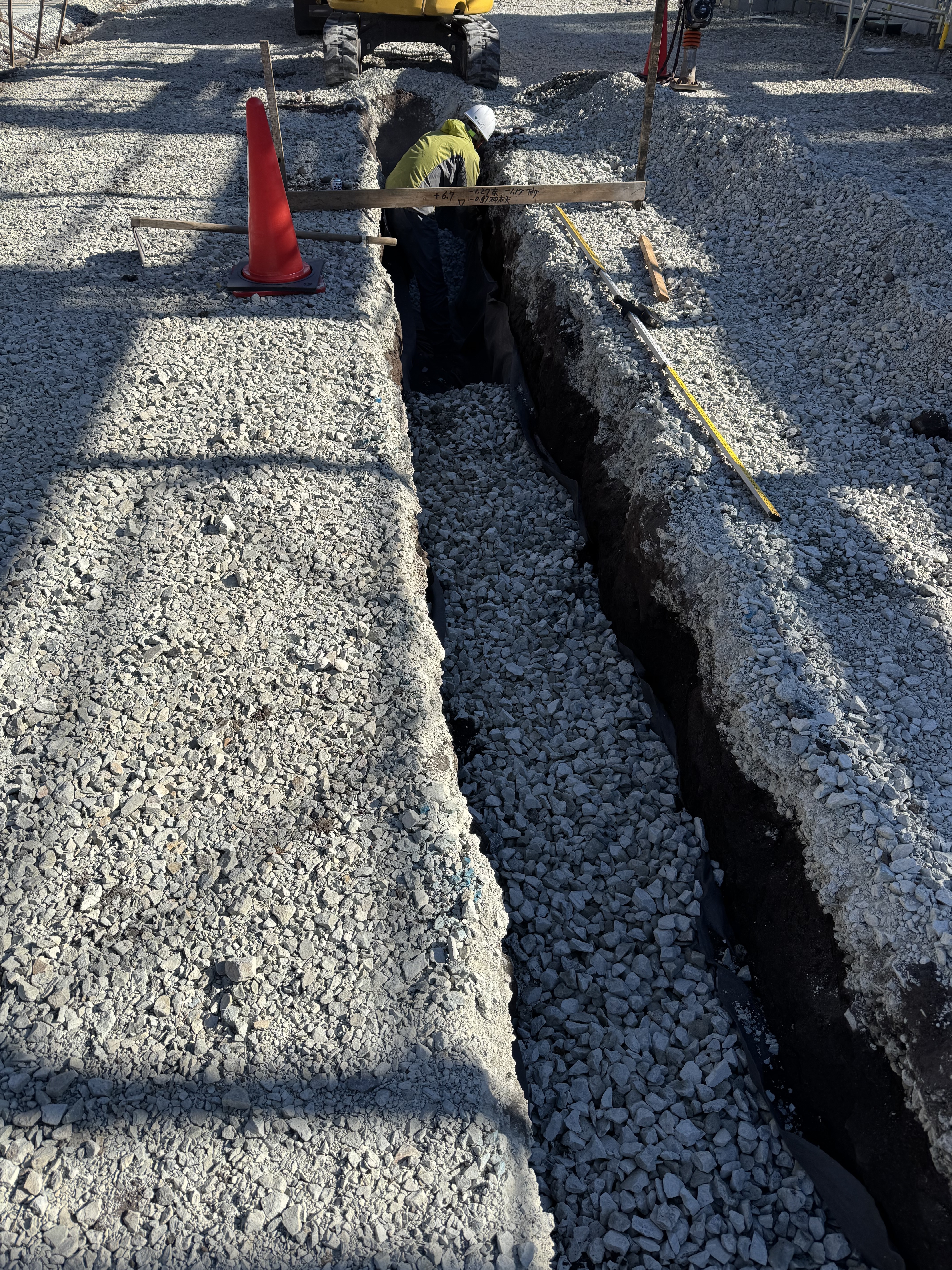 暗渠工、10m完了5m掘削、短粒砕石6m3、山砂2m3
