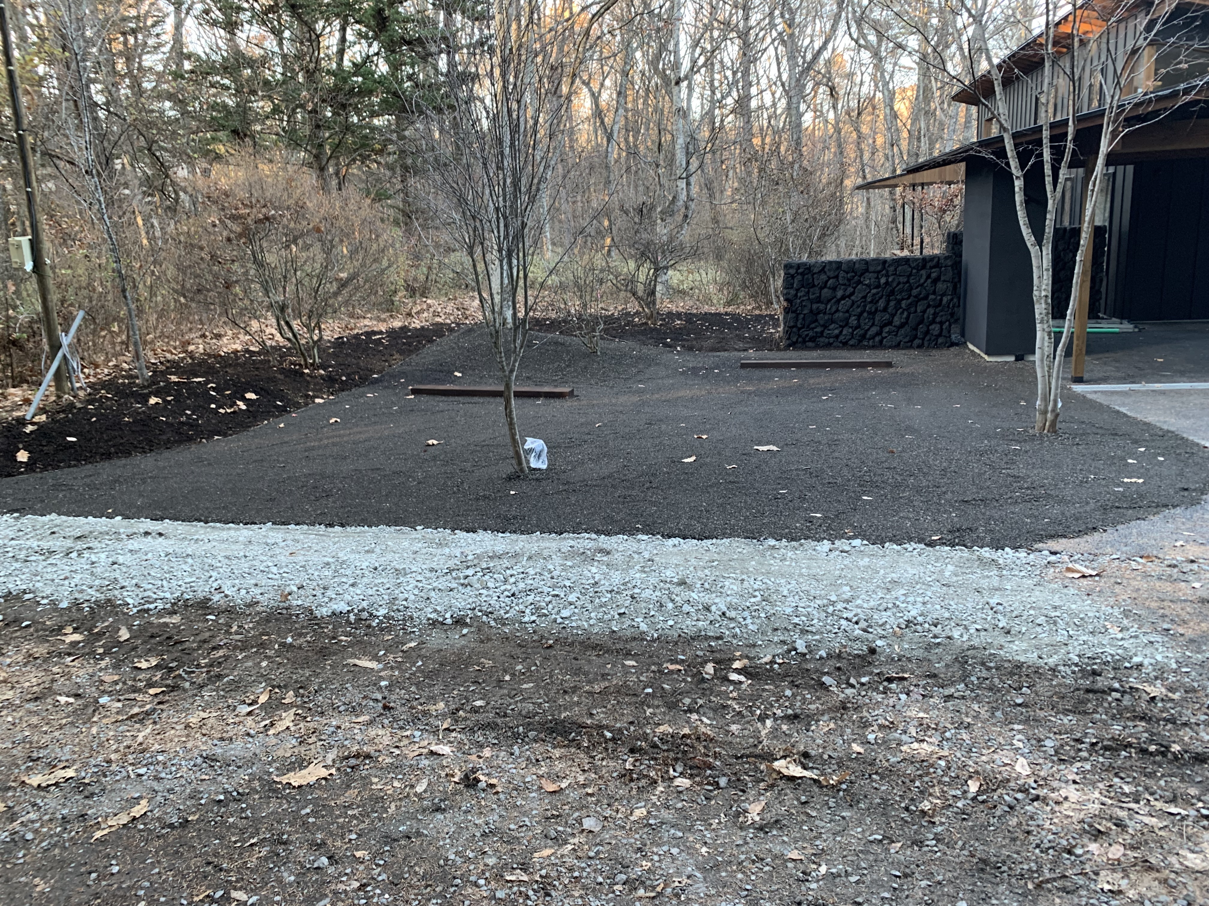 朝、石材屋さんから浅間ビリ2立米現場へ運搬